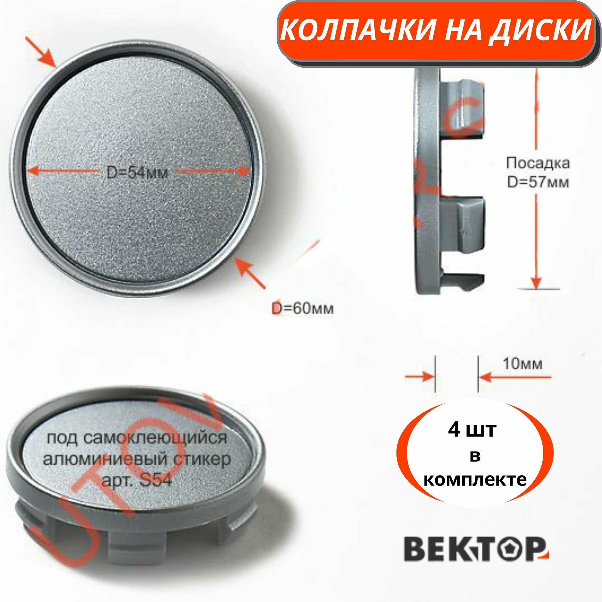 Колпачки на диски D60 с ободком под стикер S54 (SuperB) Gray, 4 шт, покрыты грунтовкой серебристого цвета информация: