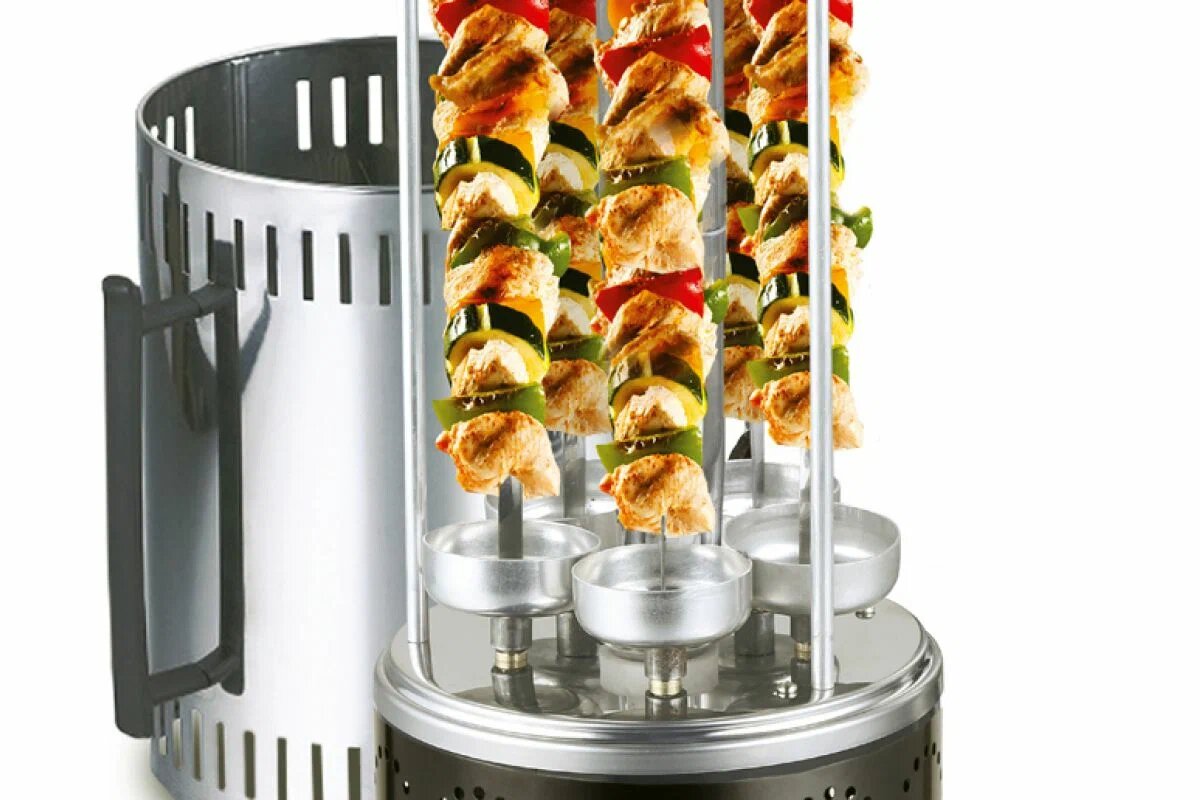 10 цен на Шашлычниица электрическая вертикальная домашняя 6 шампуров 1000 вт электрошашлычница с теном