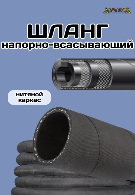 Шланг поливочный резиновый армированный кордовый всесезонный кварт d25мм длина 7 м дюритовый дренажный ШД1025-7 ДомовоД