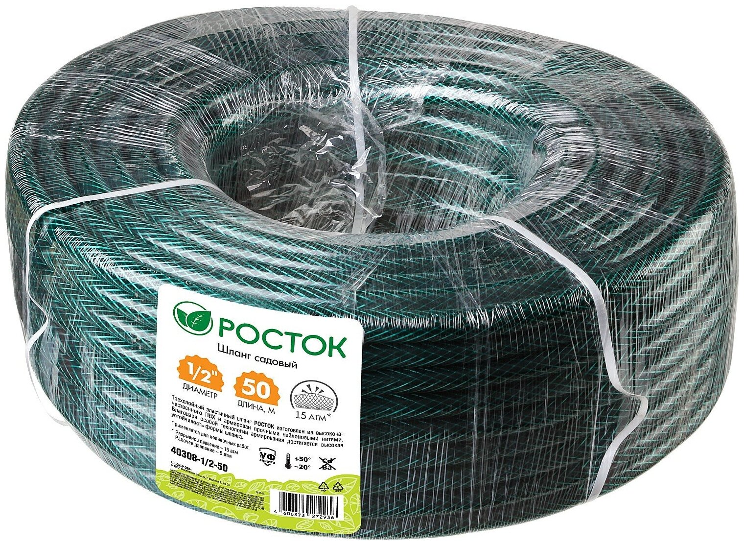 Отзывы на Росток Шланг росток классик поливочный, 15 атм., армированный, 3-х слойный, 1/2"х50м, ( 40308-1/2-50 )