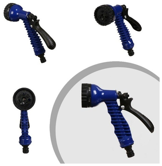 Чудо-шланг, латекс, L = 2.5 — 7.5 м, 2-слойный, нейлоновая оплётка, распылитель 7 режимов, переходник 12 мм (1/2"), 19 мм (3/4")