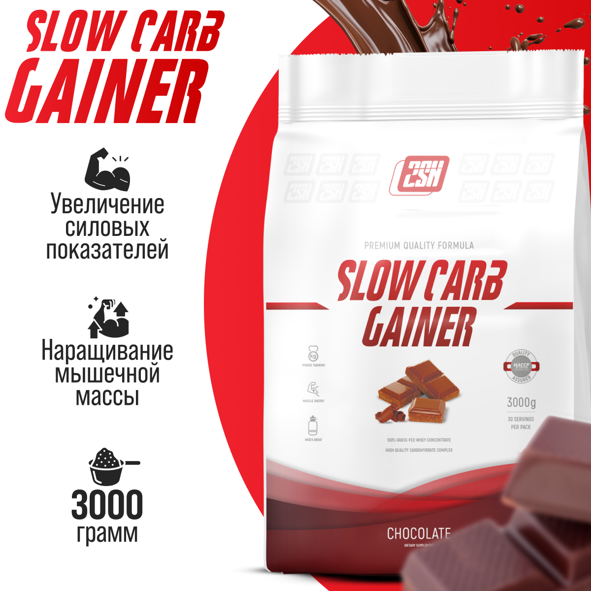 Гейнер для набора мышечной массы с разноцепочными углеводами 2SN Slow Carb Gainer 3000г (Шоколад) информация: