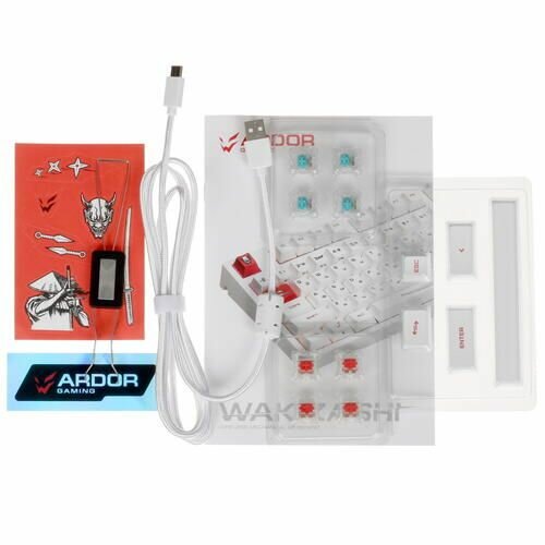Клавиатура проводная+беспроводная ARDOR GAMING Wakizashi AG-ZD-87GT-HS-W , механическая Gateron Mint, клавиш - 87, Bluetooth, USB, радиоканал, белая информация: