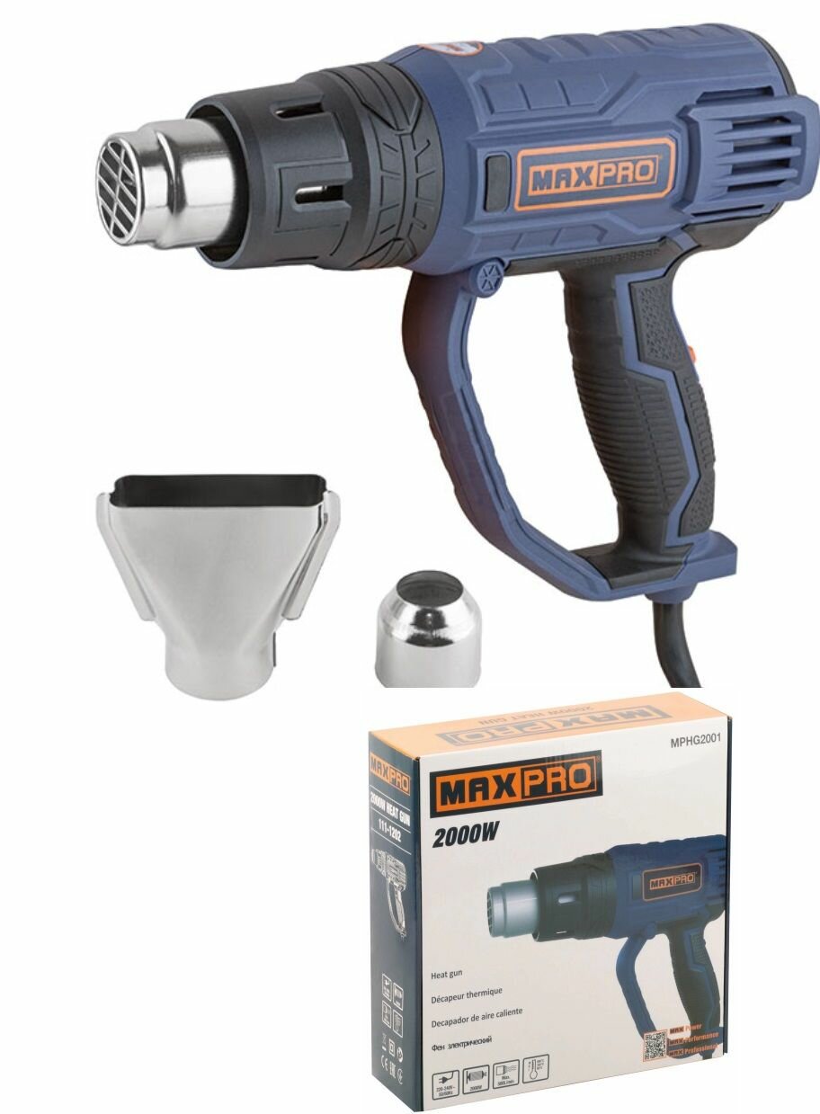 Отзывы на MAX-PRO Фен технический 2000 Вт; 60/350/600°C; 500 л/мин; 0,76 кг; резиновый кабель; резиновые вставки; кор. MAX-PRO 85252
