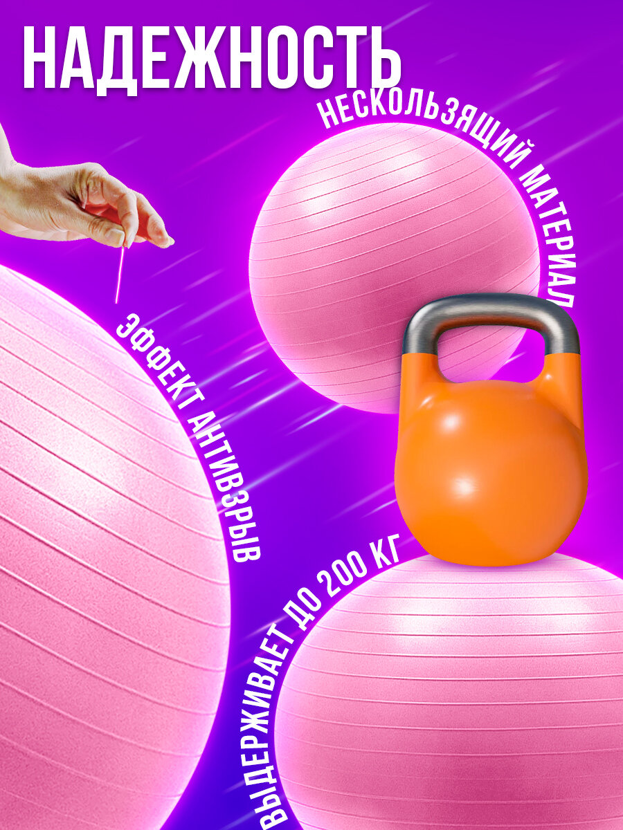 Фитбол для детей и взрослых Conflate Life, 65см, розовый, с насосом 838 ₽