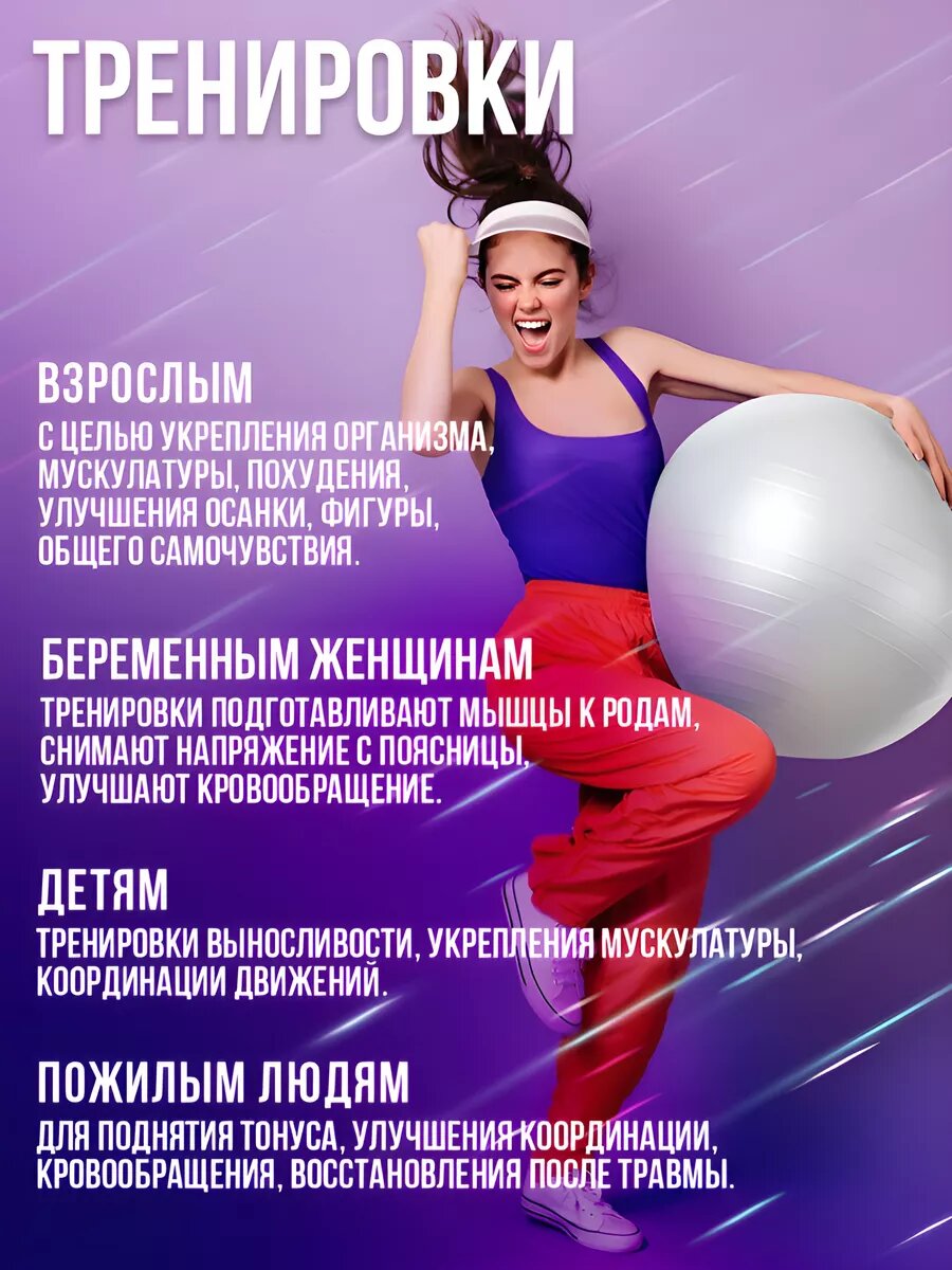 Фиолетовый мяч для фитнеса гимнастический SILAPRO, ПВХ, d75см, 900гр