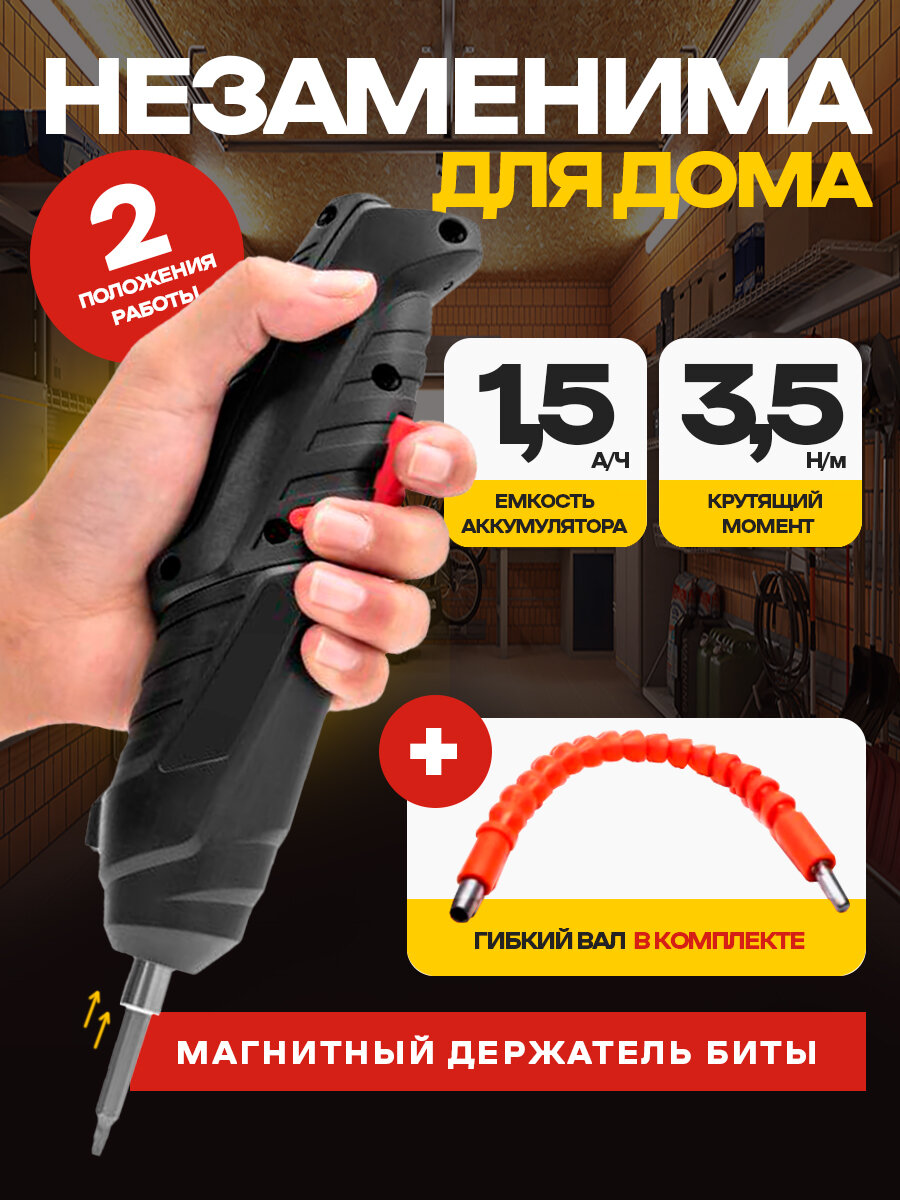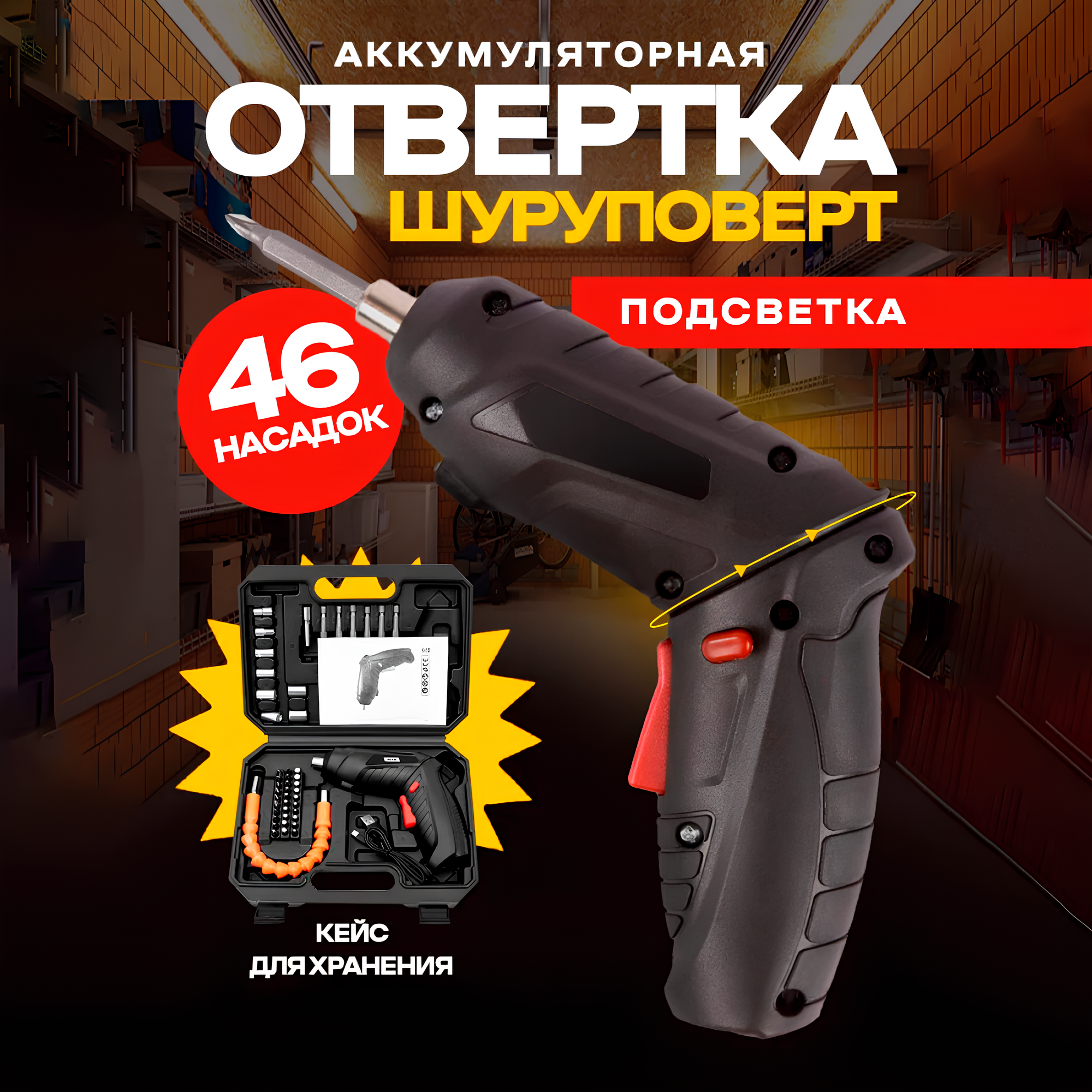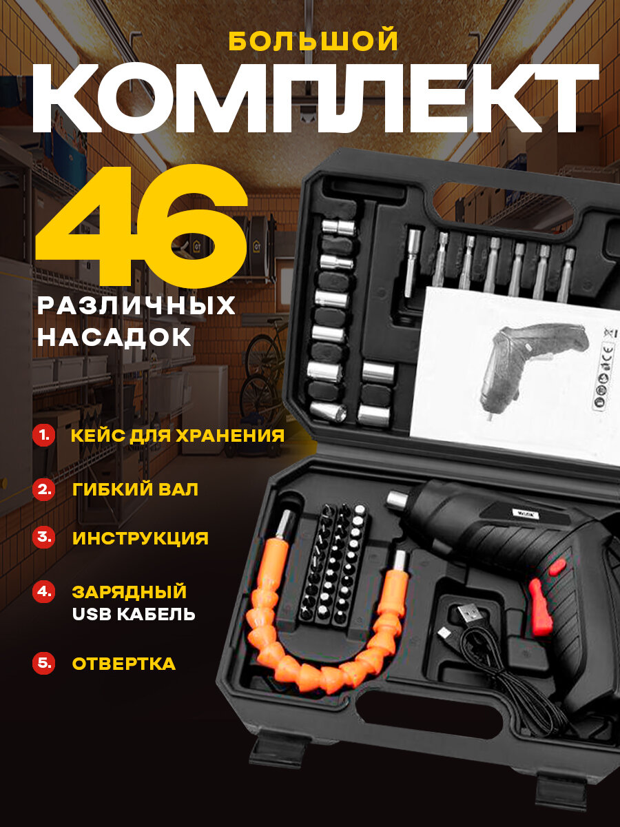 Аккумуляторная электрическая отвертка с насадками 46 шт. информация: