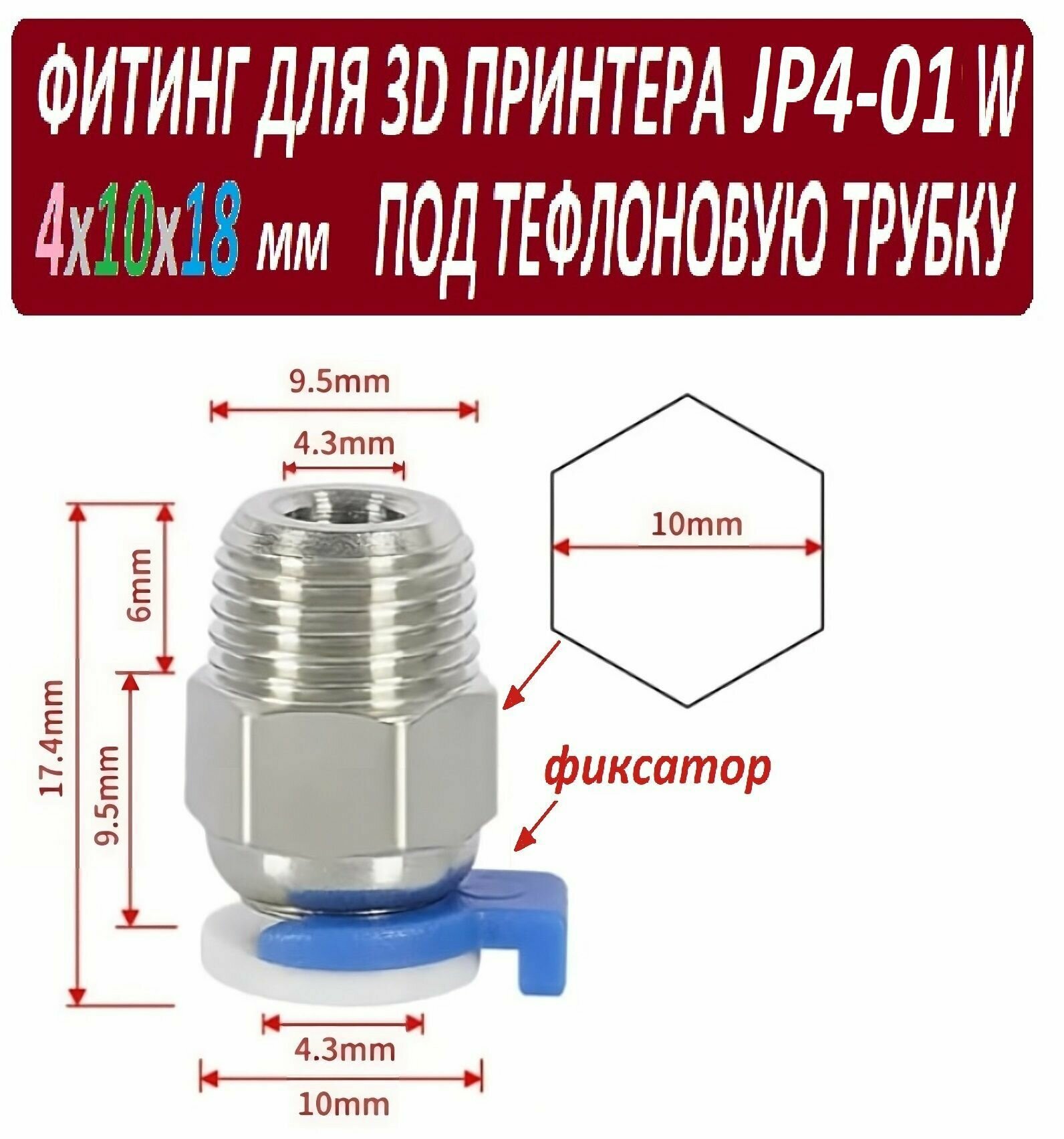 Фитинг JP4-01 с фиксатором для 3D принтера под тефлоновую трубку 2х4 мм - 1 штука информация: