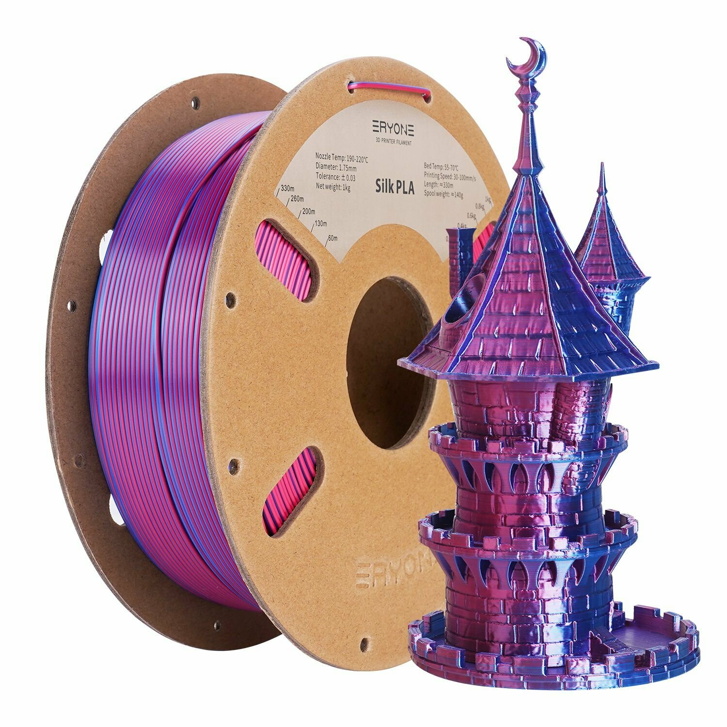 PLA пластик для 3D принтера Silk Dual-Color 1,75 мм 1 кг (Eryone) Золотой - Фиолетовый 2 745 ₽