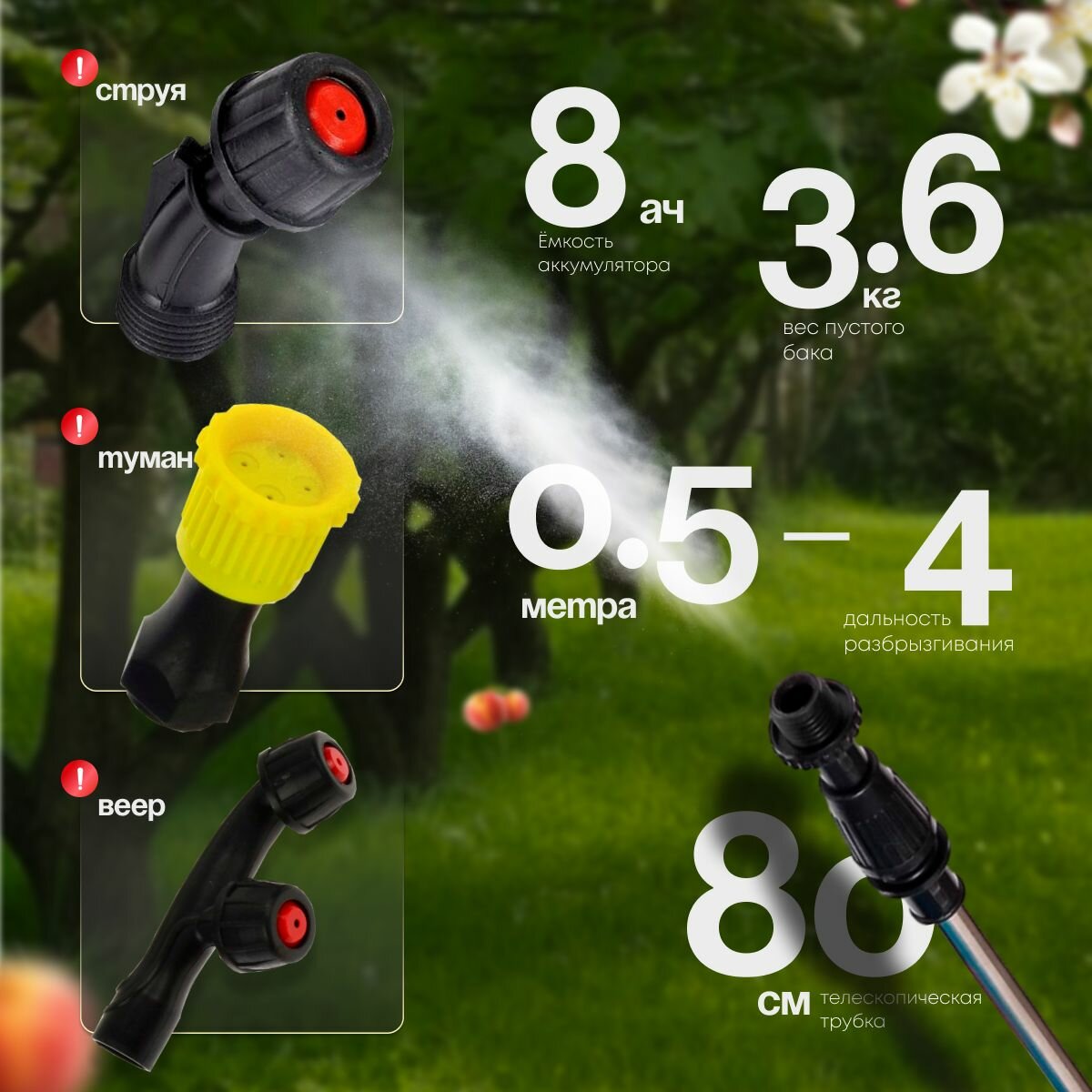 Турбо-насадка Blower Spray без аккумулятора, распыление до 8м
