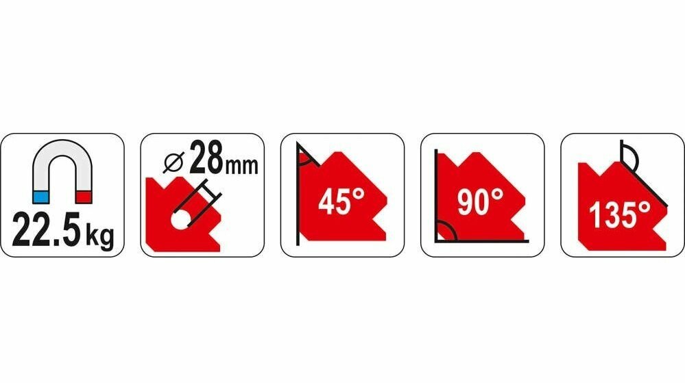 Струбцина магнитная для сварки, 22.5 кг, 45, 90, 135 градусов, 102х155х17 мм, YT0864 TOYA / YATO YT-0864 информация: