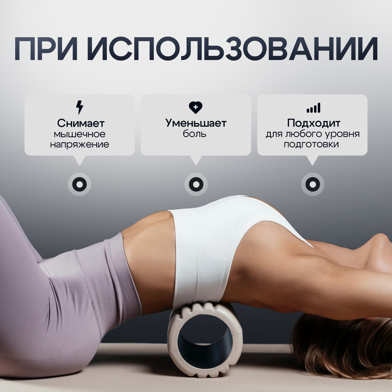 Валик массажный для спины, ролл для МФР, черный 630 ₽