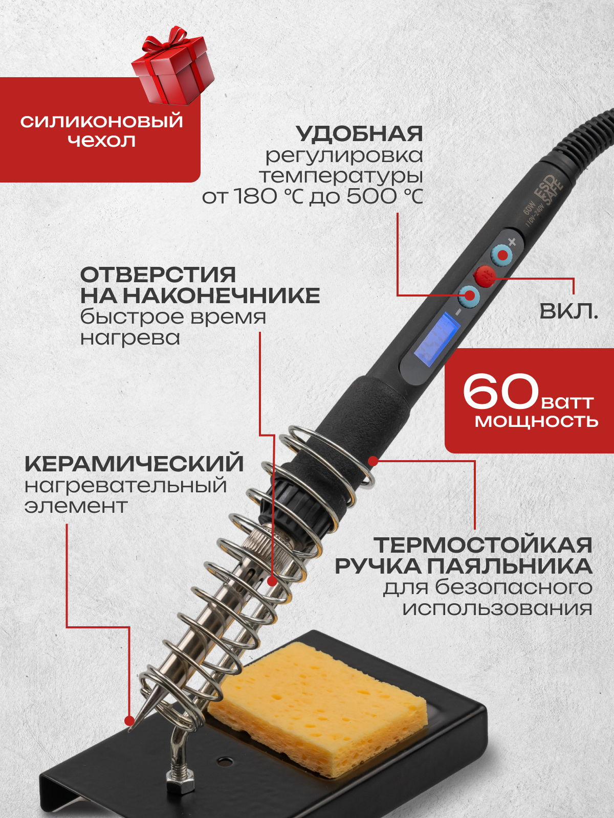 Отзывы на Набор для пайки, паяльник электрический, с регулировкой температуры, подставка, канифоль, припой, 17 предметов