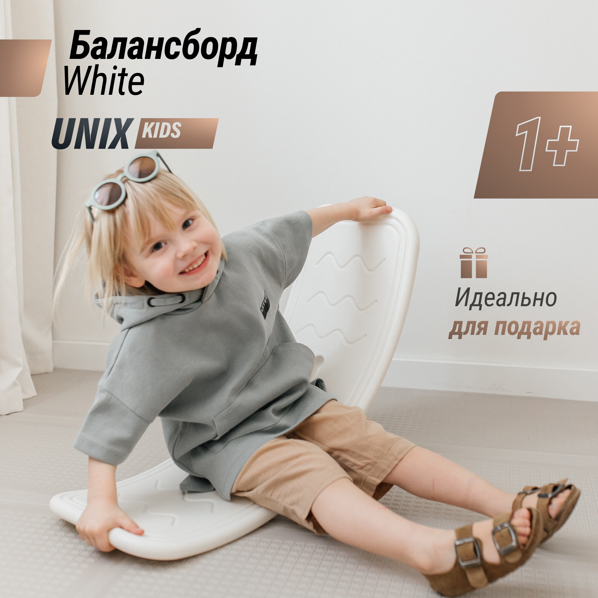 10 цен на Баланс борд детский UNIX Kids White, для дома, пластик, до 30 кг, рельефная текстура, противоскользящие накладки, белый, 90х30х20 см