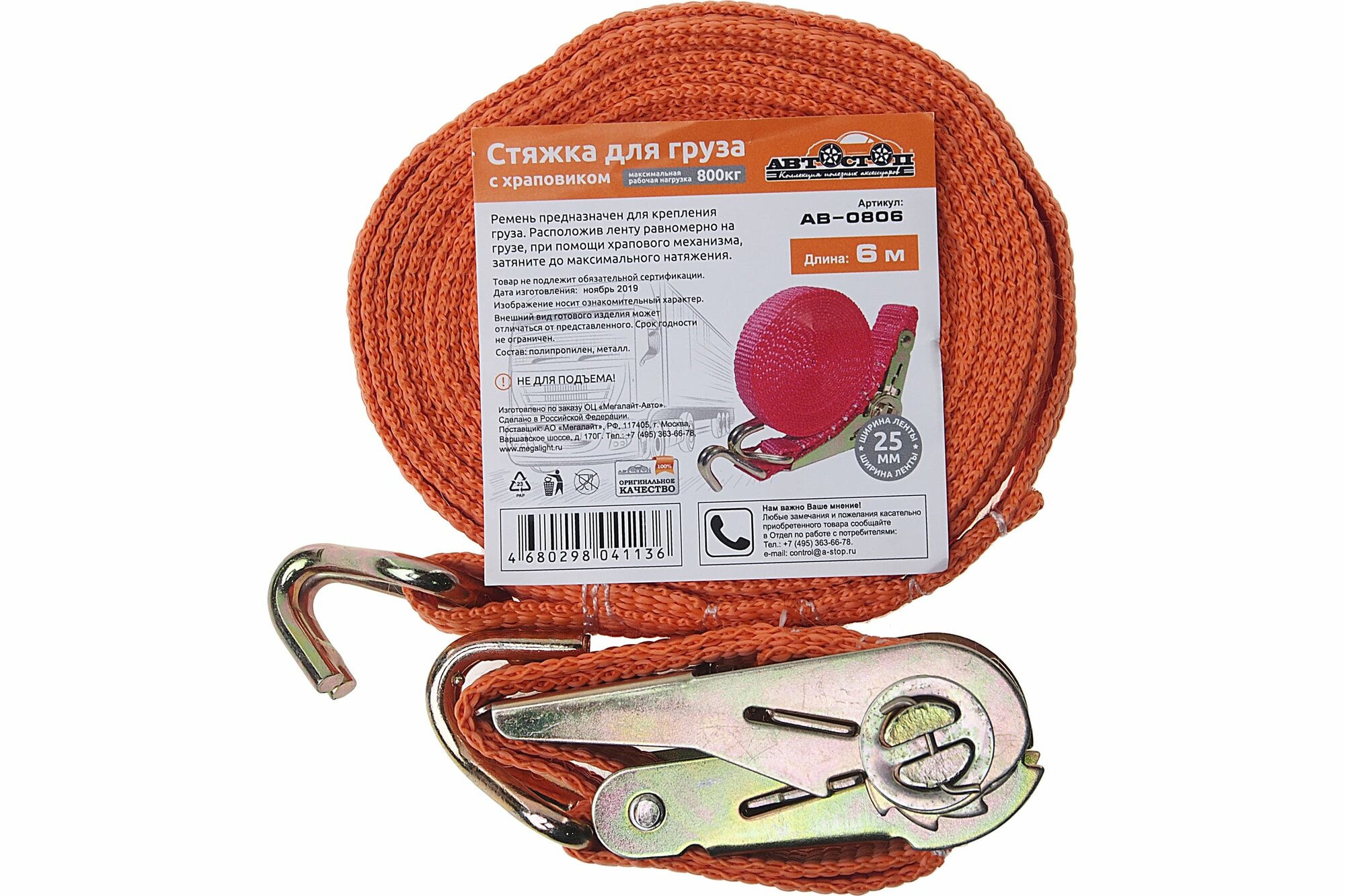 Стяжка для груза Автостоп AB-0806 с храповиком, 6м х 25мм, 800кг
