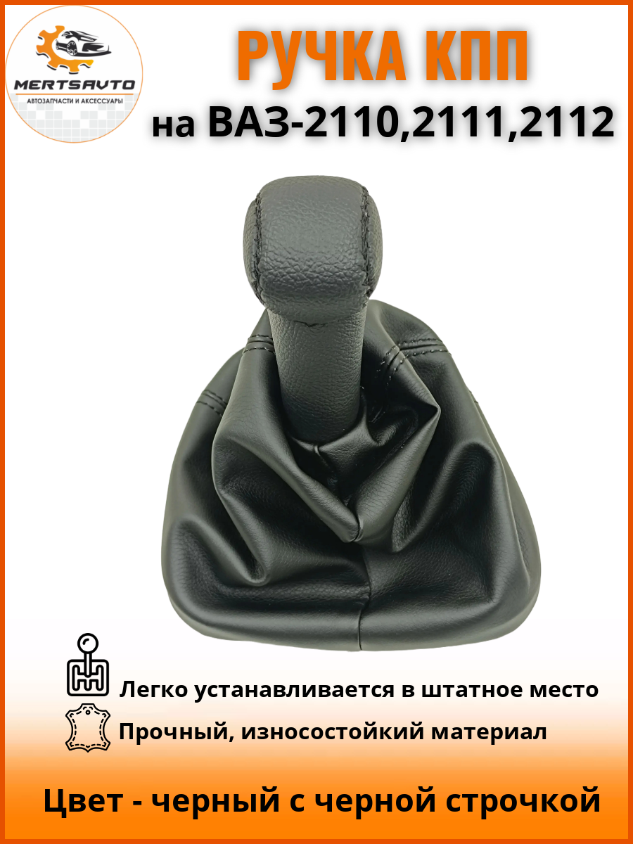 Ручка КПП Mertsavto, (без вставки схемы) с чехлом на ВАЗ-2110, 2111, 2112 (Лада, Lada), черный с черной строчкой 1 000 ₽
