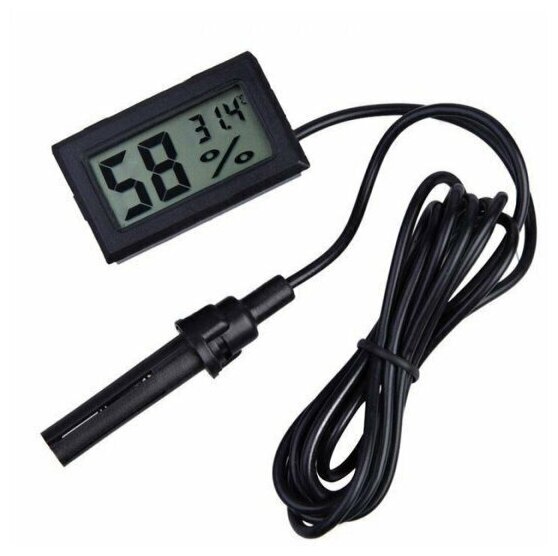 10 цен на Погодная станция 2в1/Цифровой мини термометр-гигрометр с выносным датчиком 50х30 мм/ Метеостанция/Влагометр/ Прибор для измерения температуры и влажности воздуха/Компактный портативный термометр гигрометр с LCD дисплеем /Черный