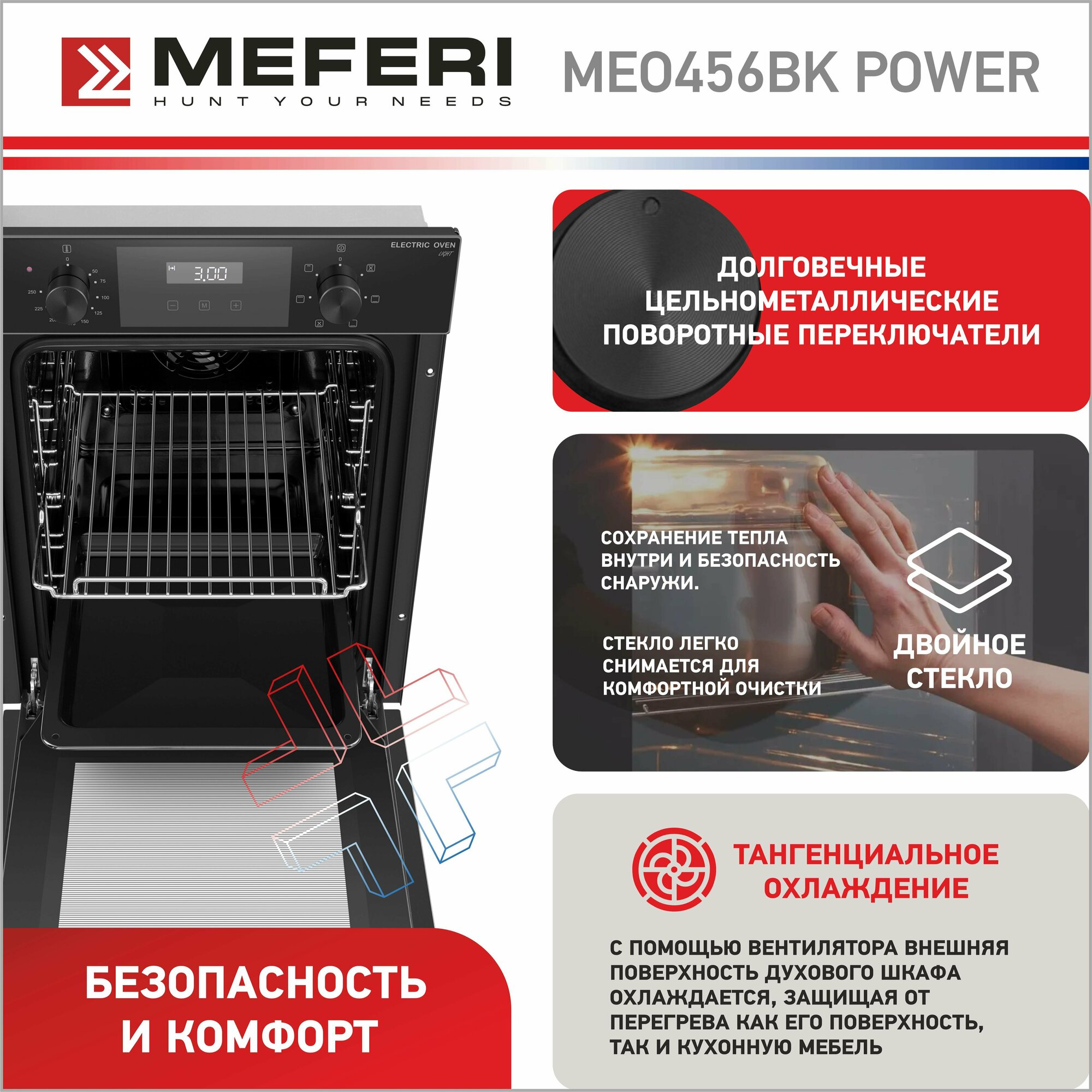 Встраиваемая электрическая духовка MEFERI 45 см MEO456BK POWER информация: