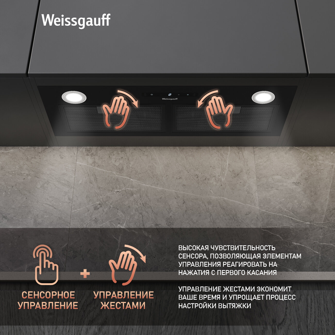 Кухонная встраиваемая вытяжка Weissgauff TEL 06 1M BE, производительность 600 м3/ч