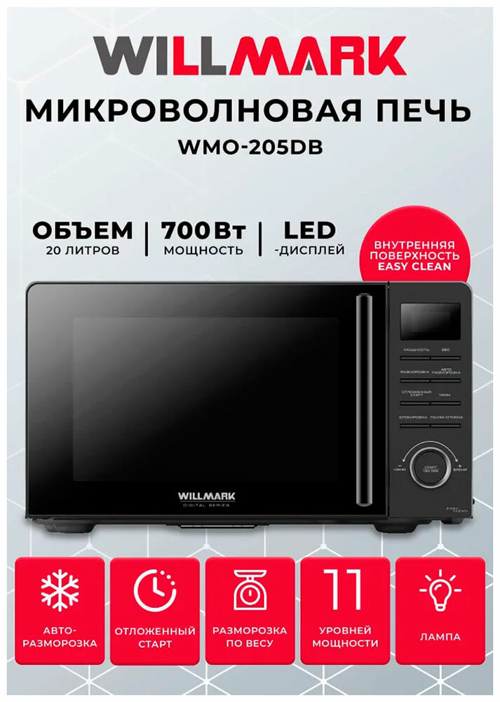 Микроволновая печь Willmark WMO-205DB, черная информация: