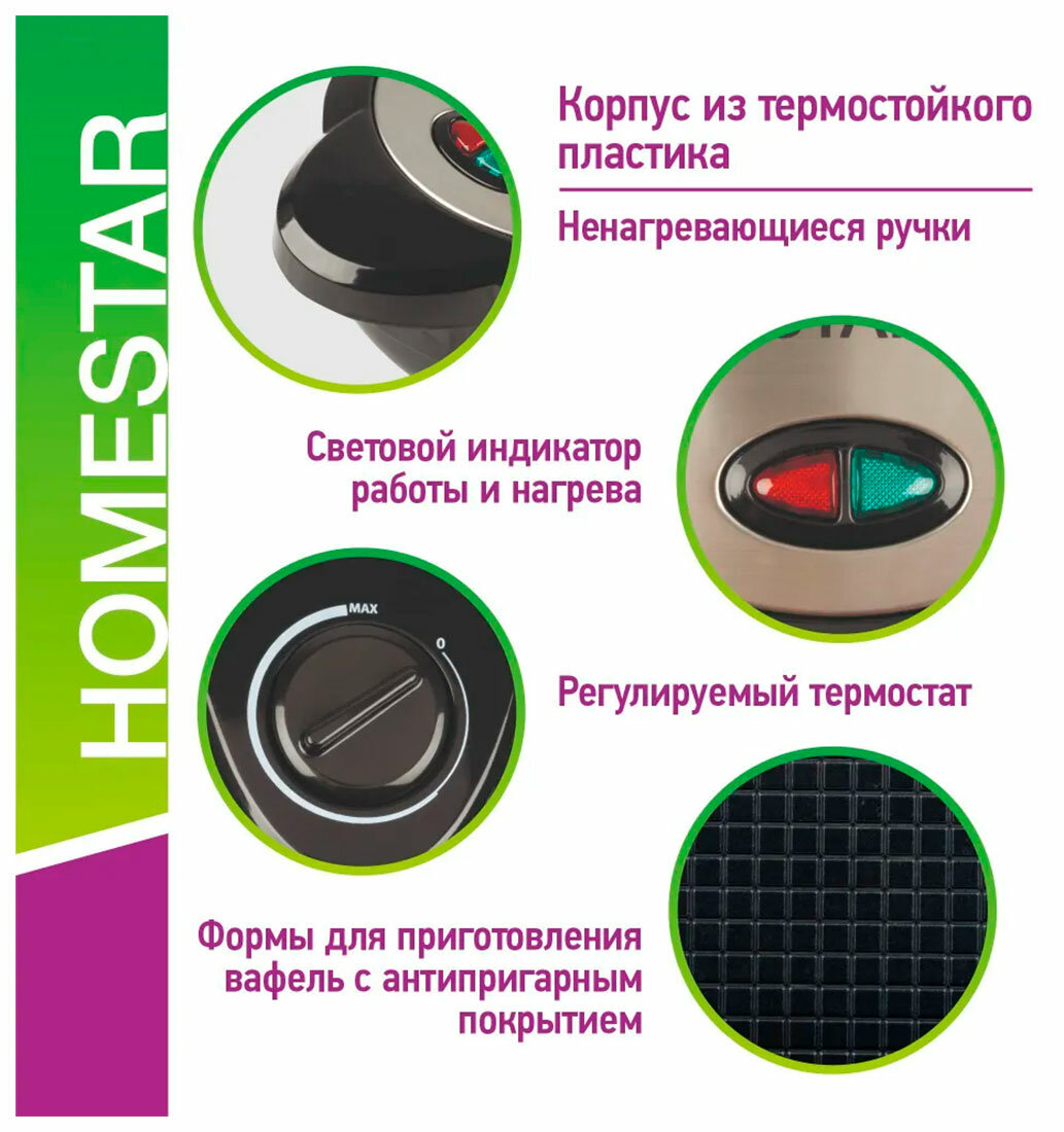 | Дополнительная информация | Вафельница HOMESTAR HS-2028 1200Вт черный |