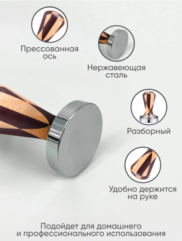 Темпер для кофе 58мм стальной,пресс для кофе с деревянной ручкой 1 950 ₽