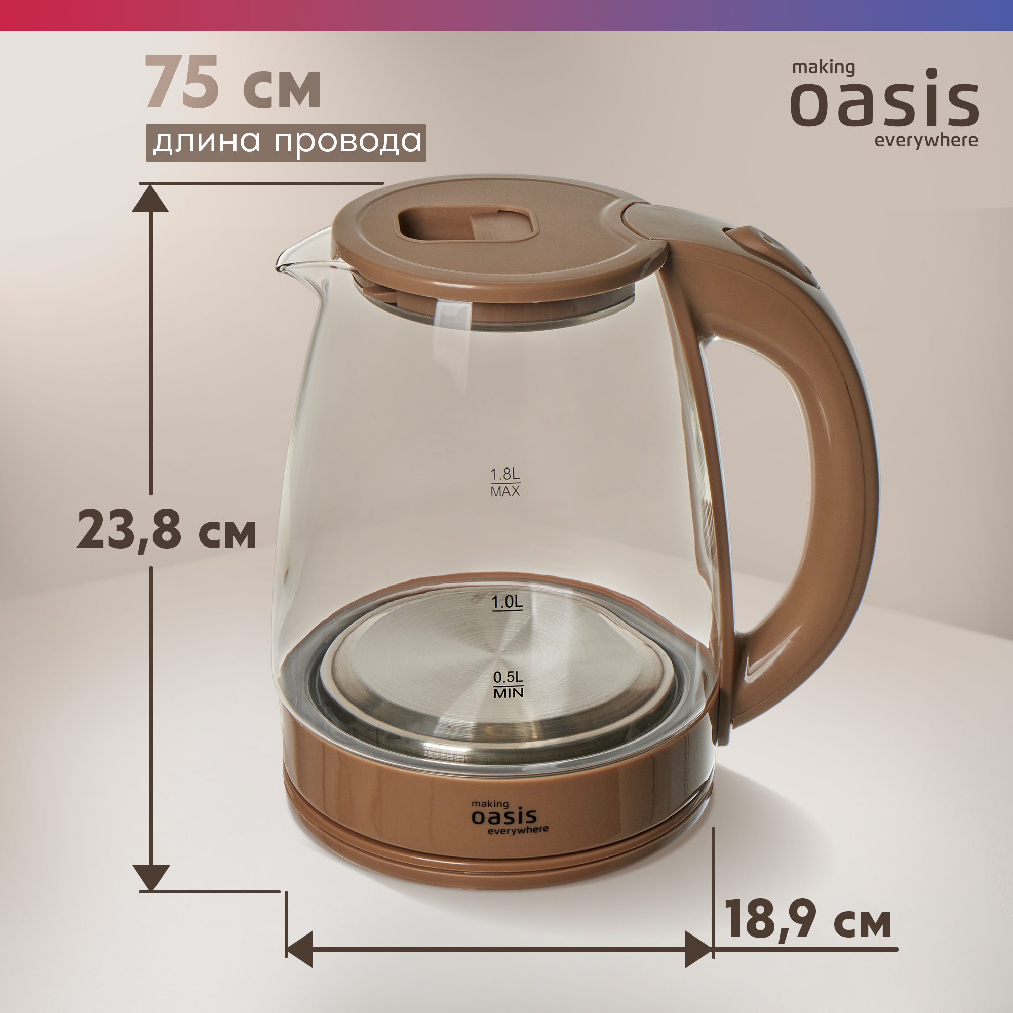 Чайник Oasis K-8GI 2000вт 1,8л, стекло, бежевый