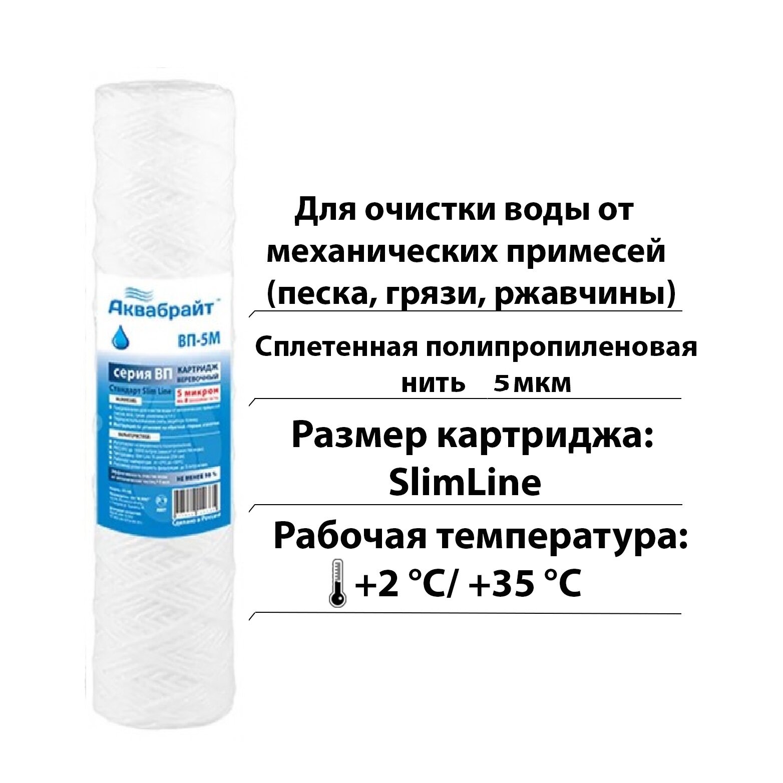 Магистральный фильтр аквабрайт АБФ-10 1/2 с нитяным картриджем ВП-5М 5мкм 10SL для холодной воды информация:
