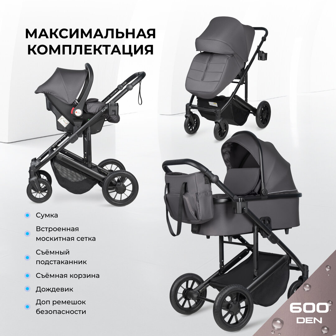 10 цен на Коляска 3 в 1 для новорожденных всесезонная Farfello Sola Trio Comfort, графит