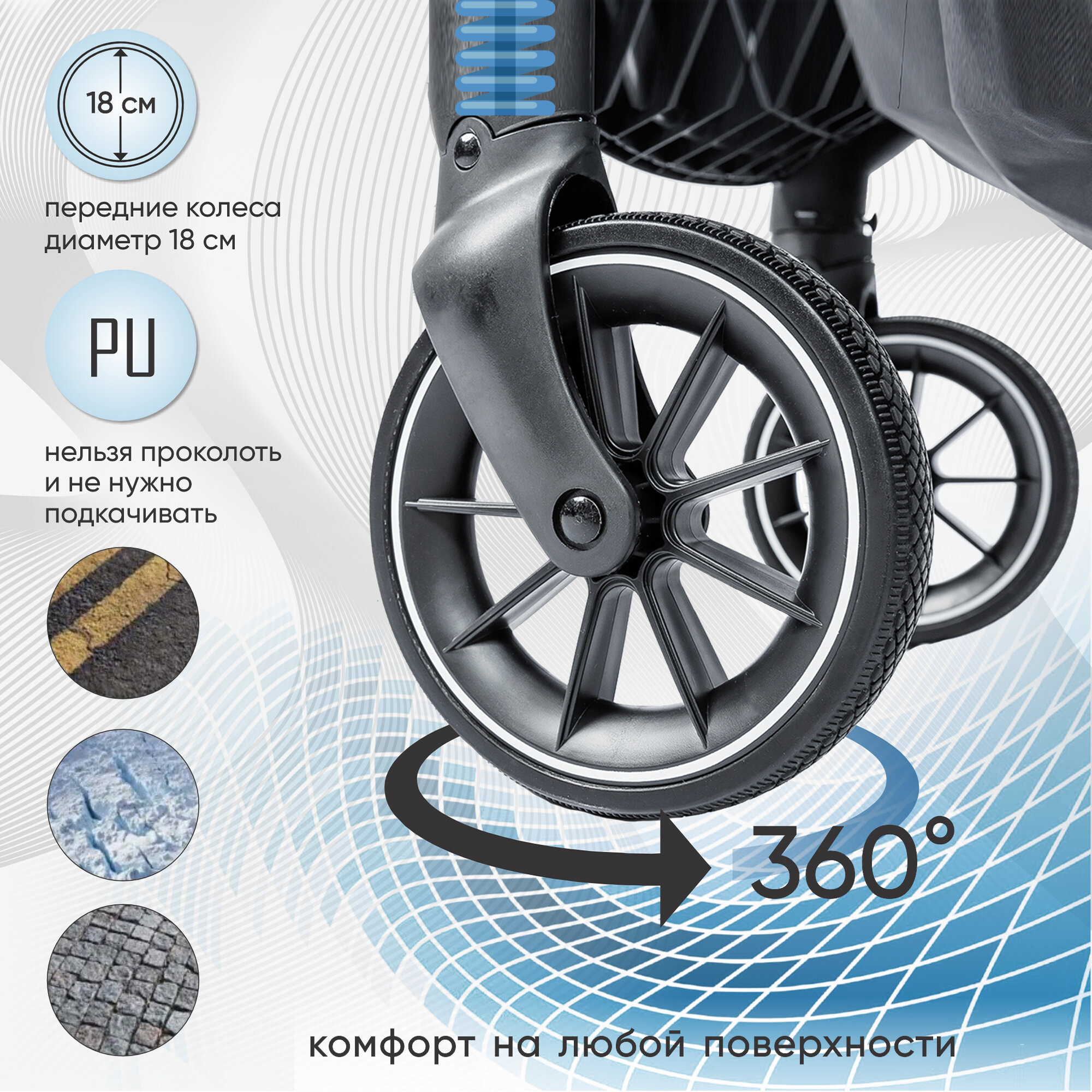 | Колеса | 4 шт., полиуретановые, 18-24 см |