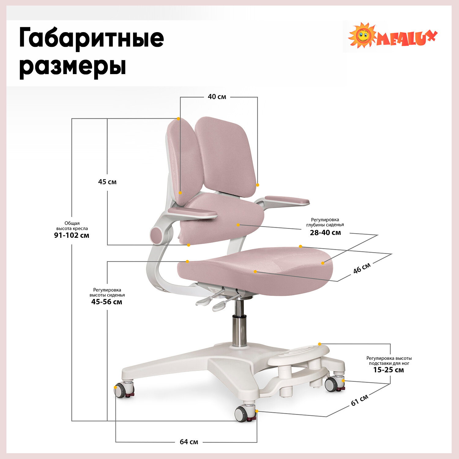 | Регулировка | высоты поясничного упора / высоты сиденья / глубины сиденья |