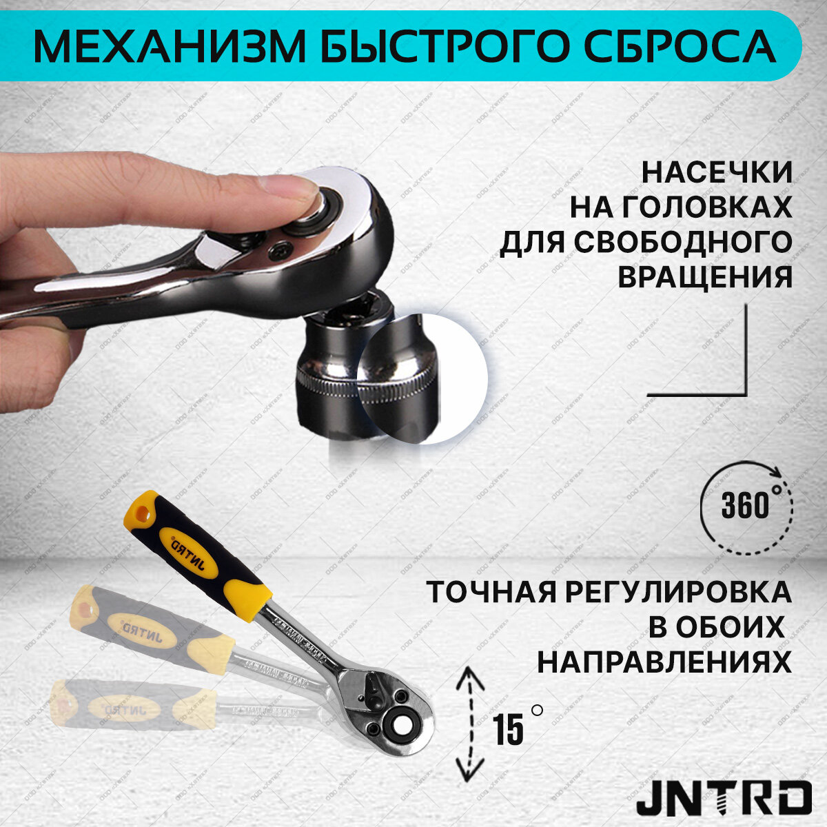 Набор ручных инструментов для авто Jntrd J-10108, 108 предметjd, трещотка 24 зубца 1/2", 1/4"