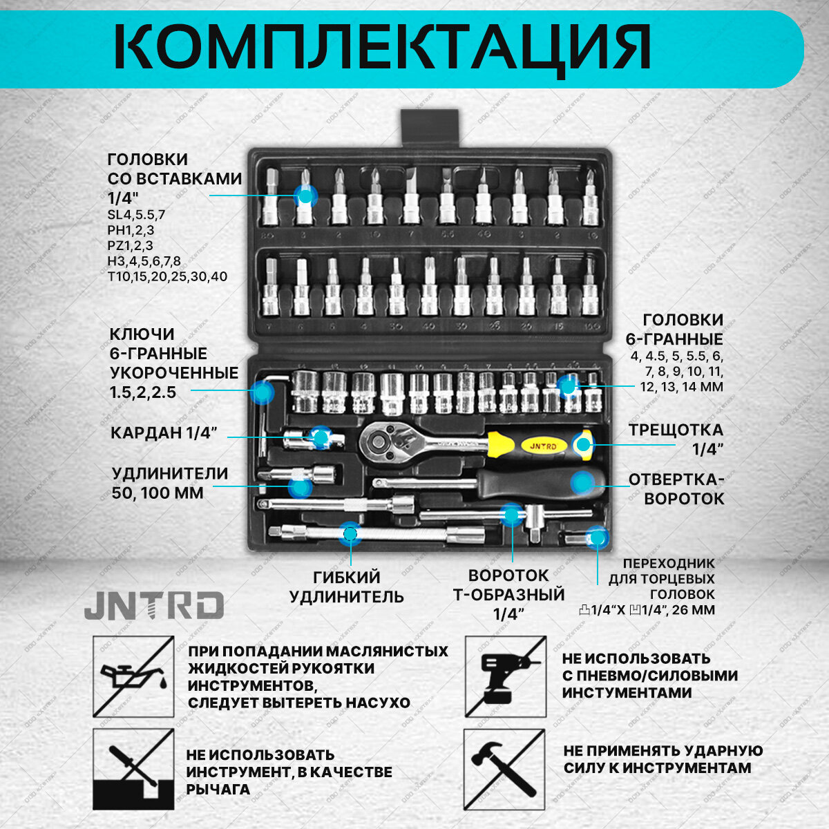 Набор инструментов JNTRD 46 предметов, трещотка 1/4", информация: