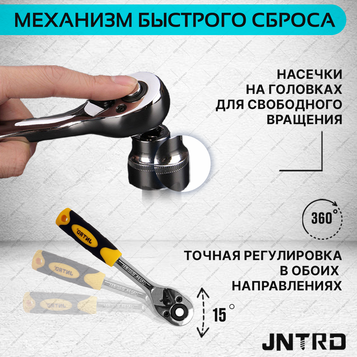 Набор ручных инструментов для авто Jntrd J-10108, 108 предметjd, трещотка 24 зубца 1/2", 1/4"