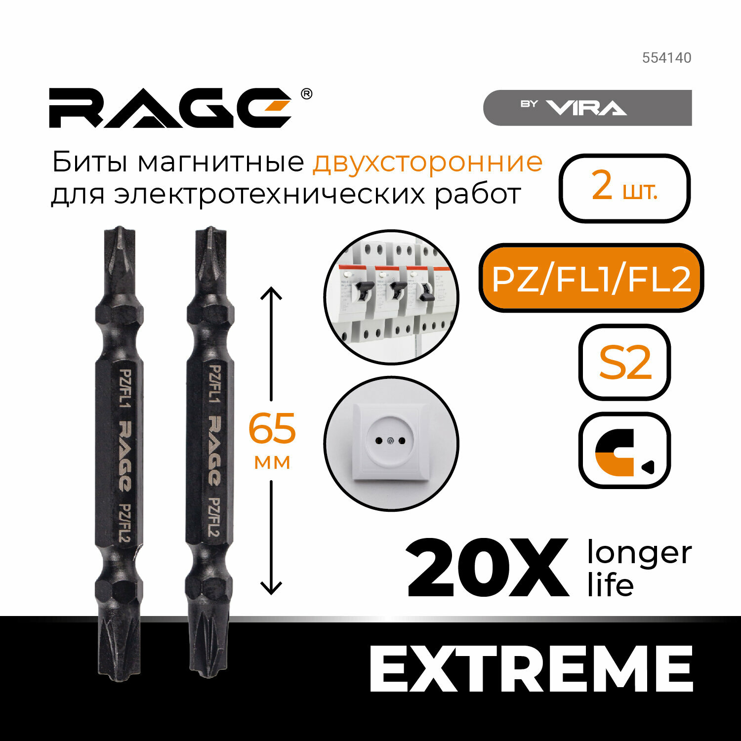 Биты магнитные двухсторонние S2 PZ/FL1 x PZ/FL2 x 65 мм 2 шт RAGE by VIRA информация: