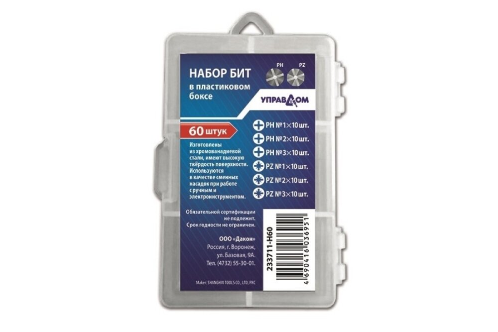 Управдом Набор бит 60шт,CrV, в пластиковом боксе 233411-H60 4100002284 информация: