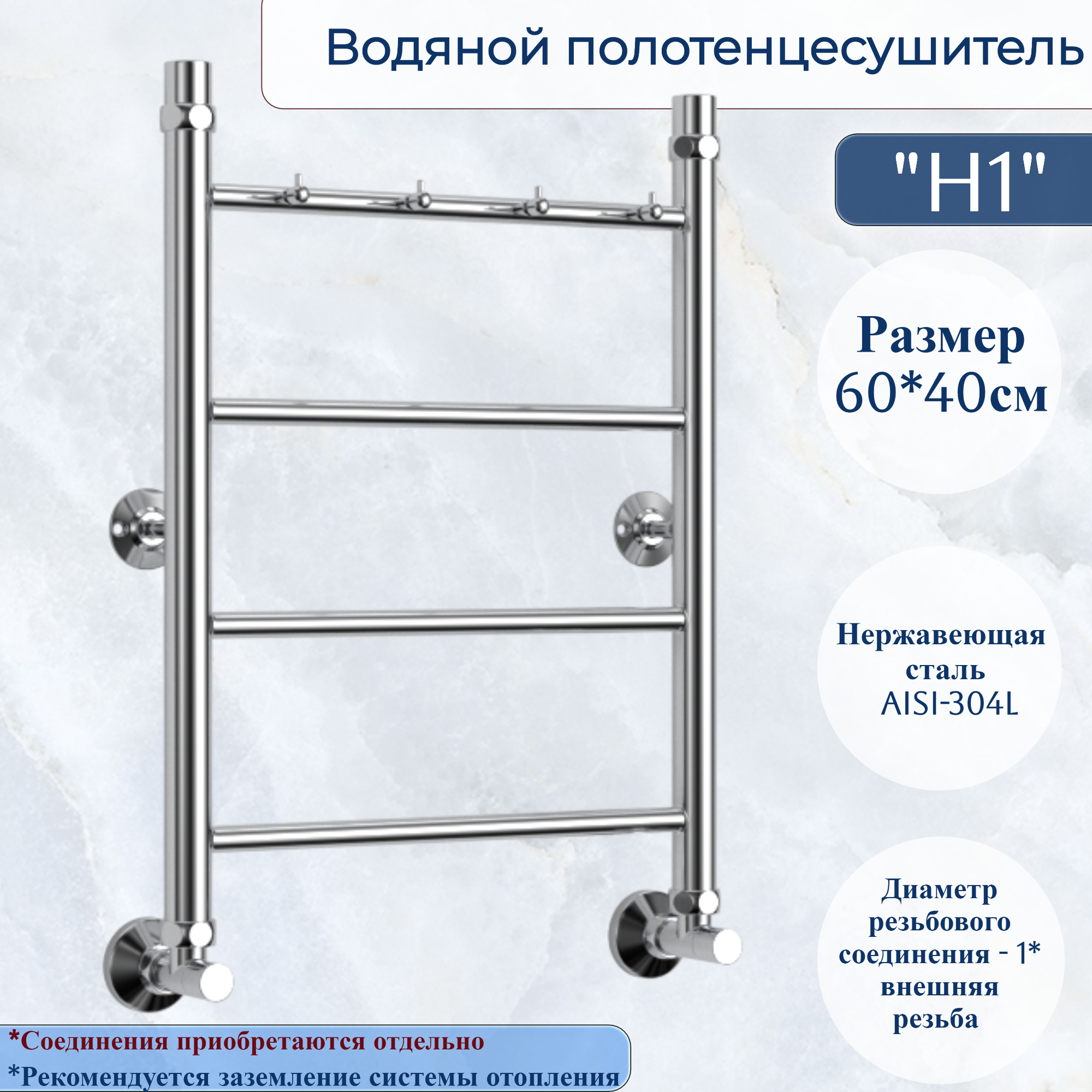 Водяной полотенцесушитель нержавеющая сталь "юрма" H1 60/40см с крючками информация: