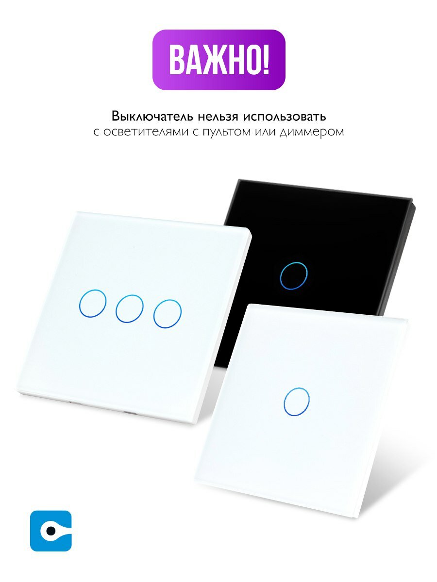 Отзывы на Сенсорный стеклянный выключатель Easy Tech на 3 группы света, черный, 300W на 1 группу света/ переключатель света