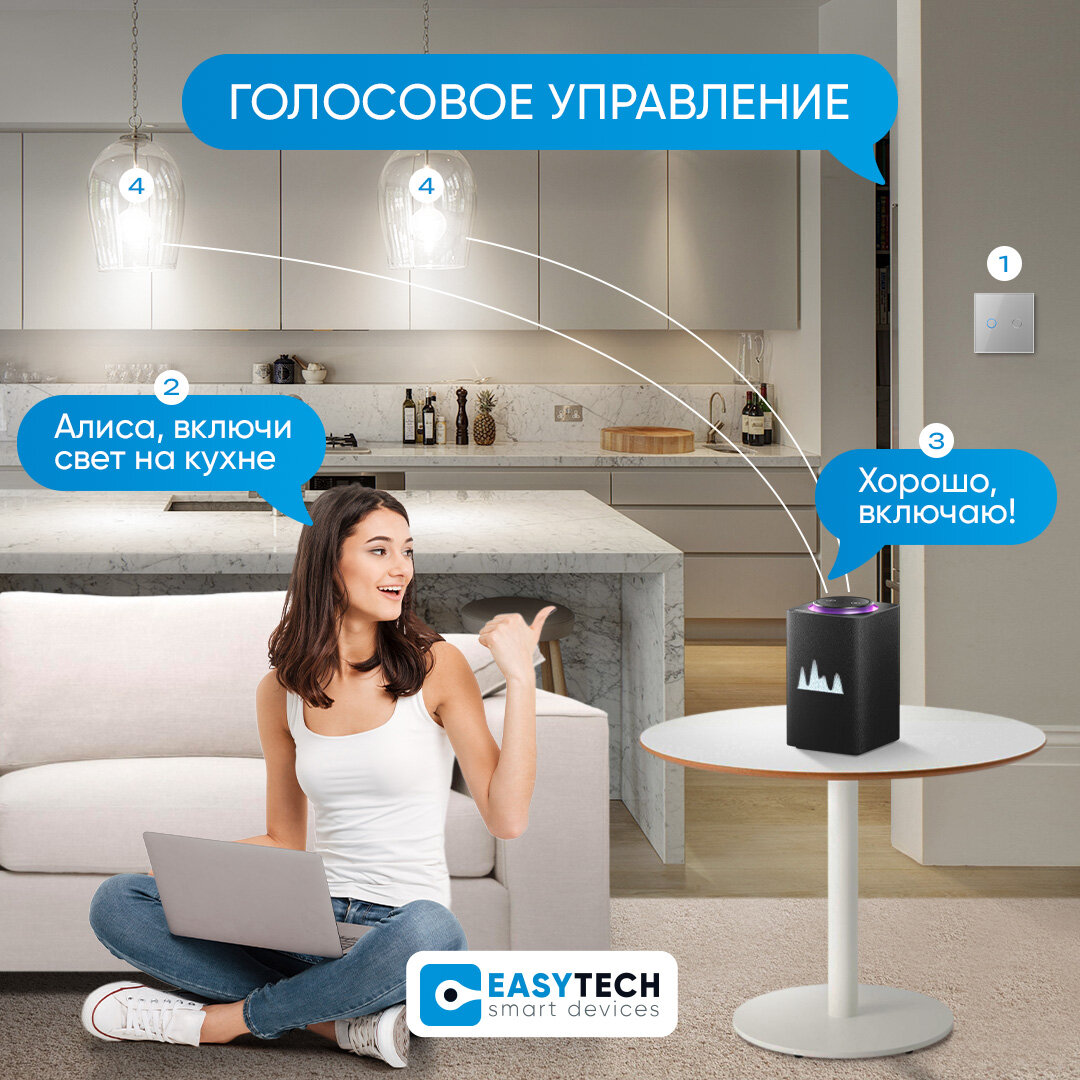 Умный сенсорный стеклянный выключатель С Алисой, 1000W, Easy Tech