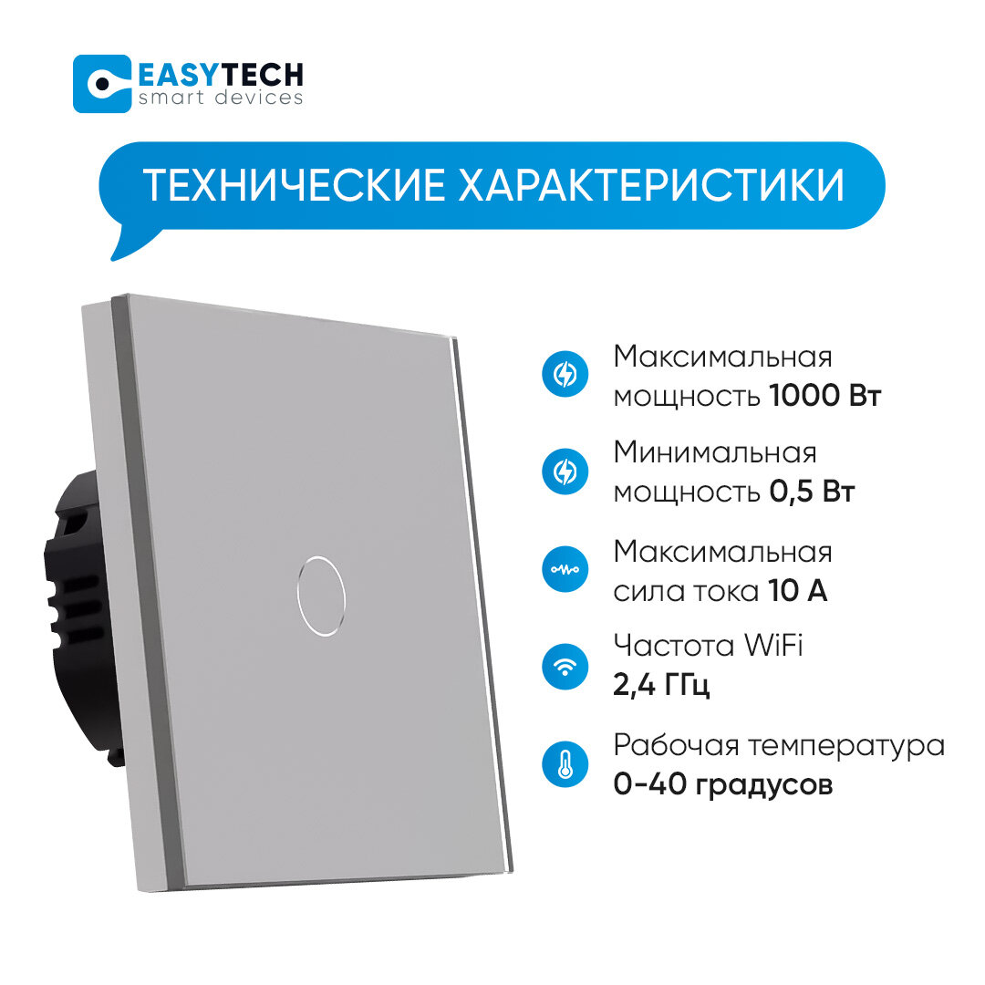 Отзывы на Умный сенсорный стеклянный выключатель С Алисой Easy Tech одноклавишный, серый 1000W/переключатель света