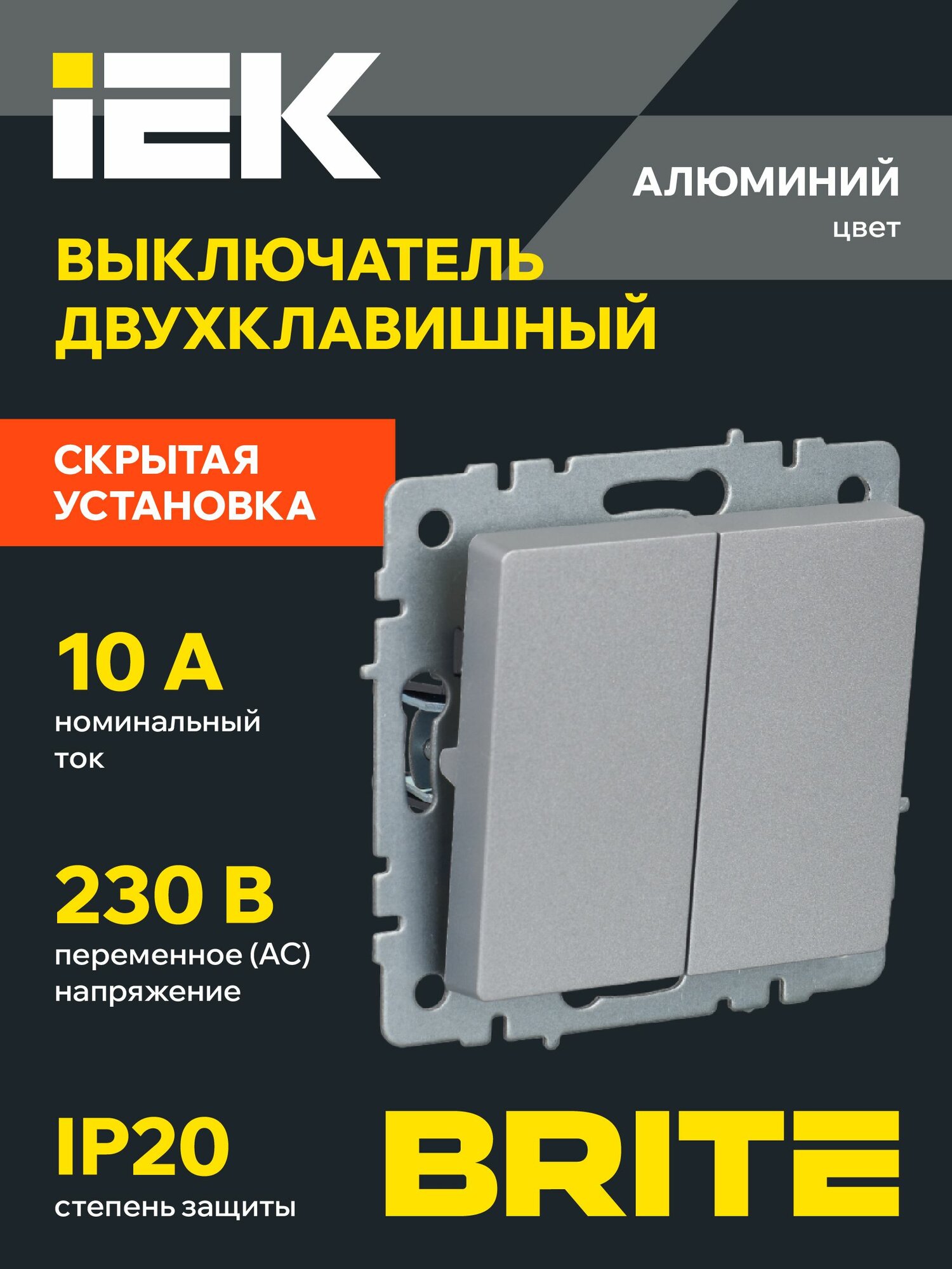 10 цен на Выключатель IEK Brite ВС10-2-0-БрА скрыт. 2кл. IP20 алюминий (упак.:1шт) (BR-V20-0-10-K47)