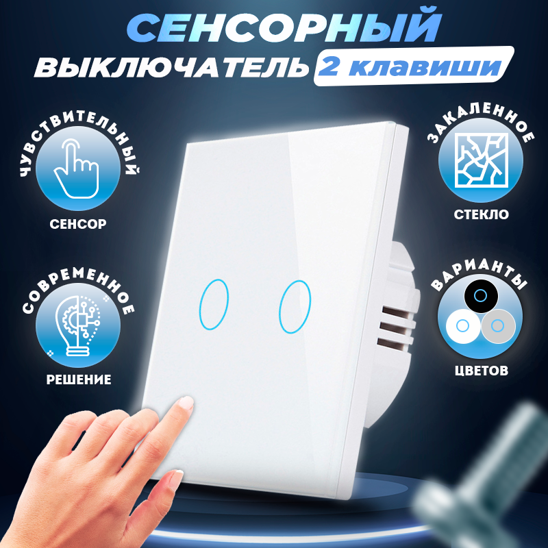 Сенсорный выключатель двухклавишный, на фазу, белый информация:
