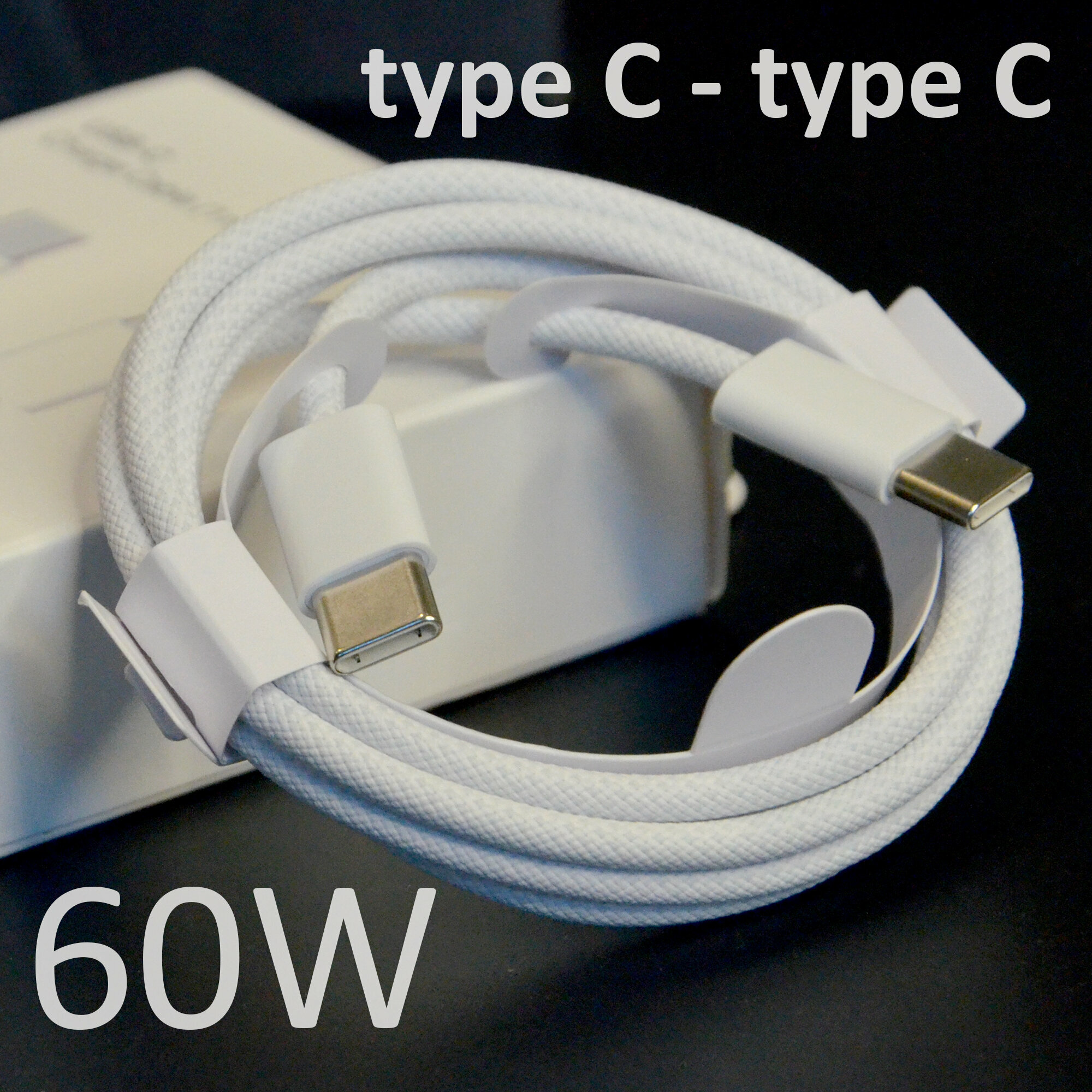 Кабель плетеный type c-type c 60 Вт, зарядка для iPhone 15, iPad Pro, Android, 1 метр, белый информация: