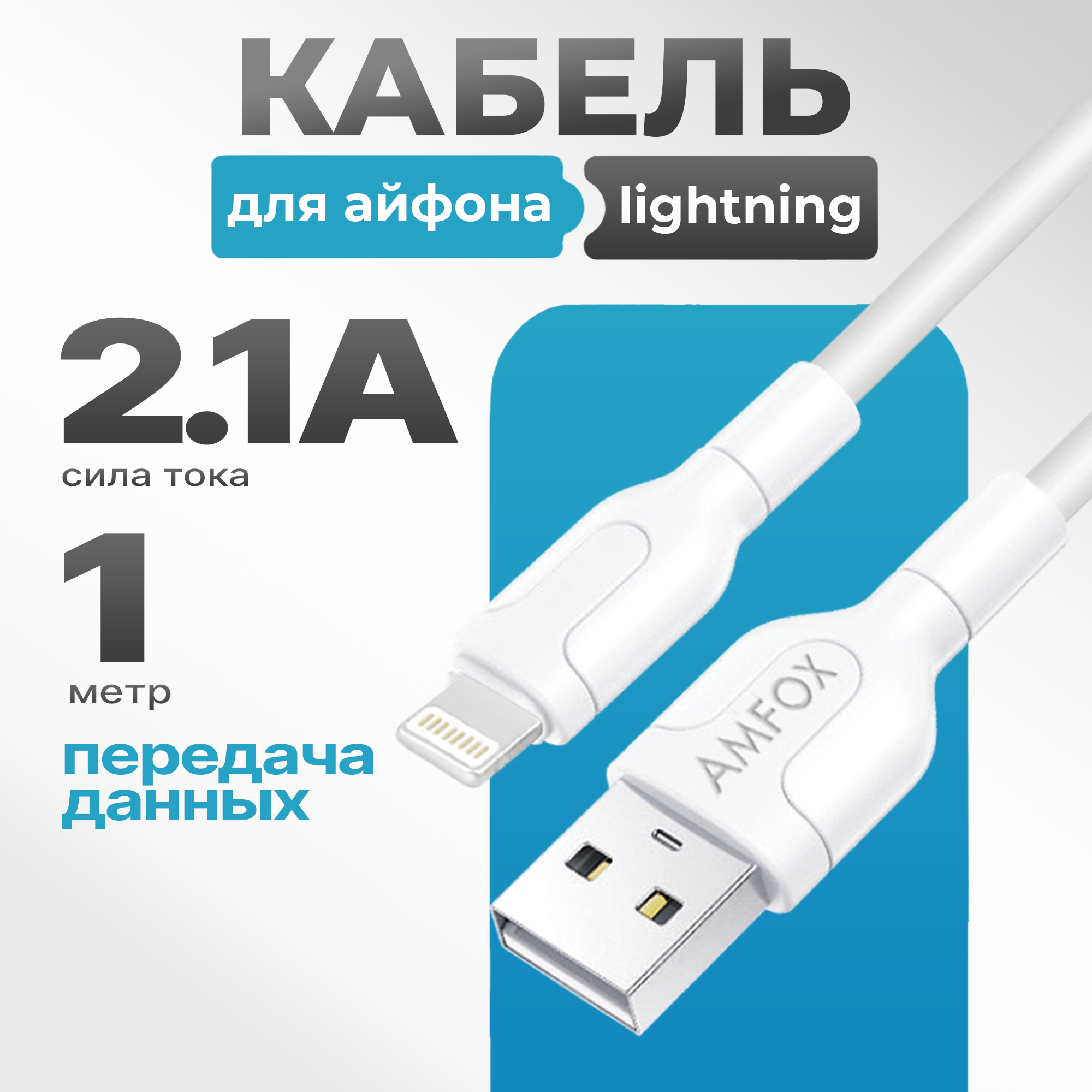 Кабель для айфона, AMFOX C11, Lightning, 2.1А, зарядка и передача данных, провод для айфона, кабель lightning, lightning usb, baseus, ugreen, белый информация:
