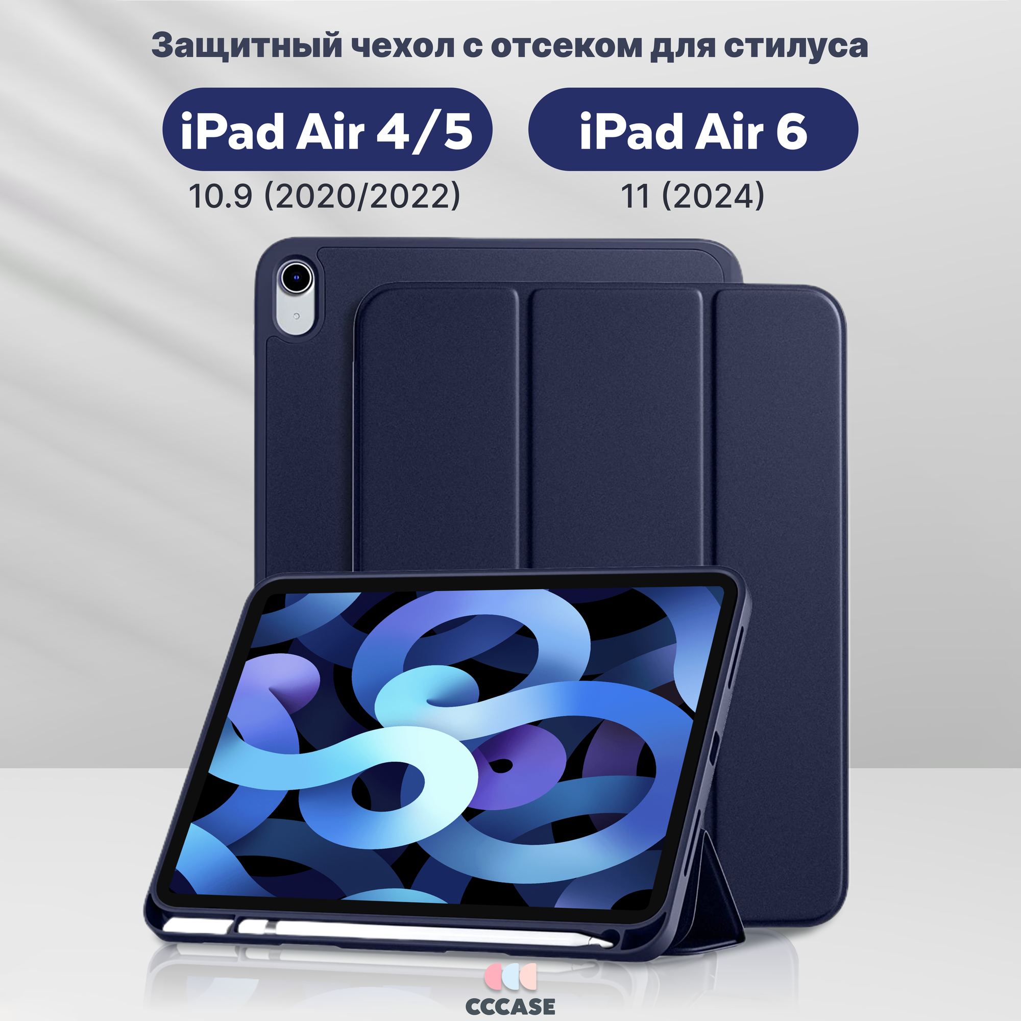 CCCASE / Чехол на iPad Air 6 11(2024); iPad Air 5 10.9 (2022); iPad Air 4 10.9 (2020) - A2316 A2324 A2325 A2072 A2588 A2589 A2591 A2902 A2903 A2904, с отделением для стилуса, цвет: темно-синий информация: