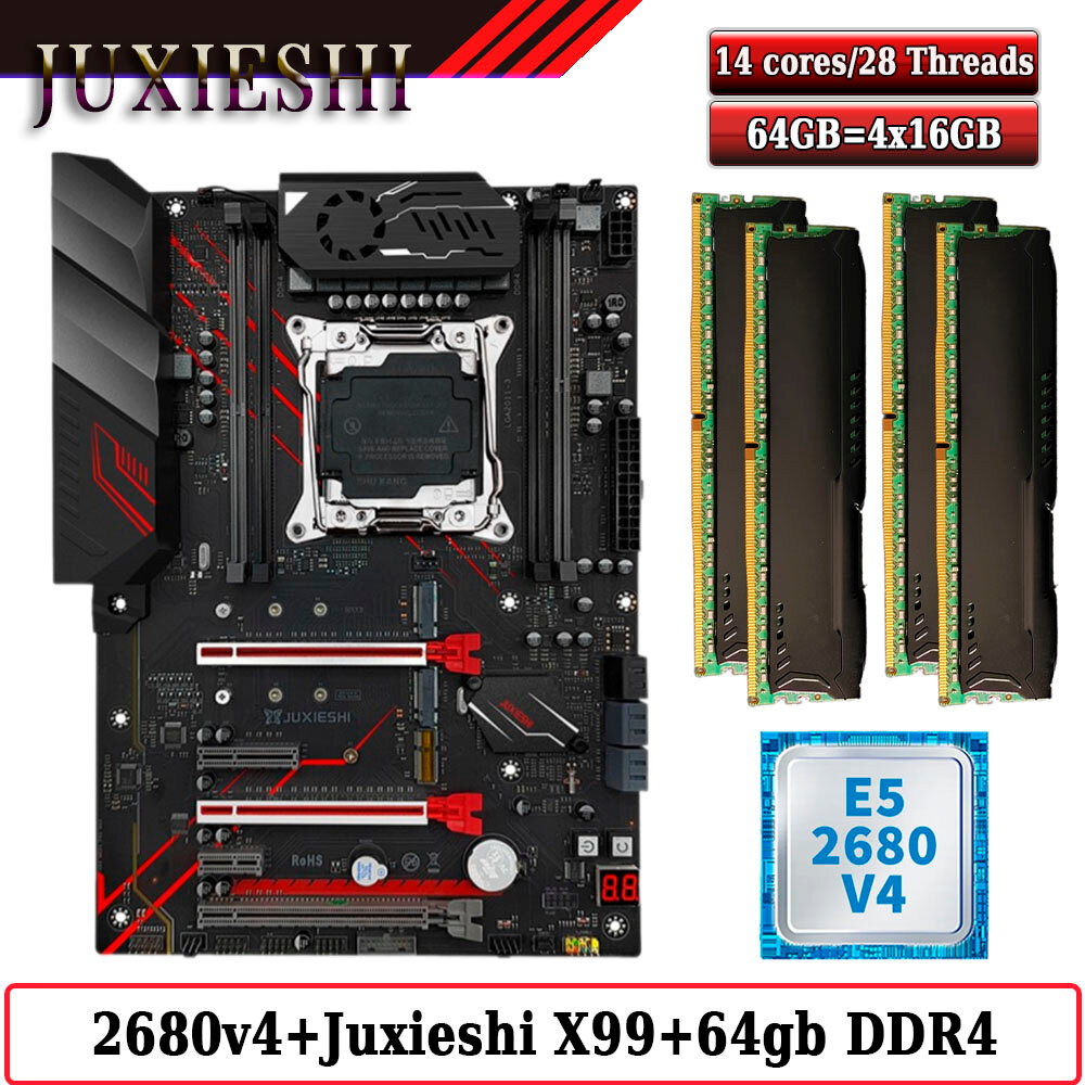 10 цен на Комплект материнская плата Juxieshi X99-MR9A PRO + Xeon 2680V4 + 64GB DDR4 ECC 4x16GB Black
