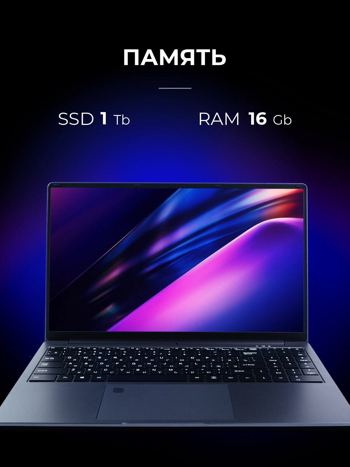15.1" Ультрабук для работы и учебы, Notebook, RAM 16 ГБ, SSD 1ТБ, IPS Full HD 1920x1080, Intel N5095, Windows 11 pro, цвет Mid Gray, русская раскладка