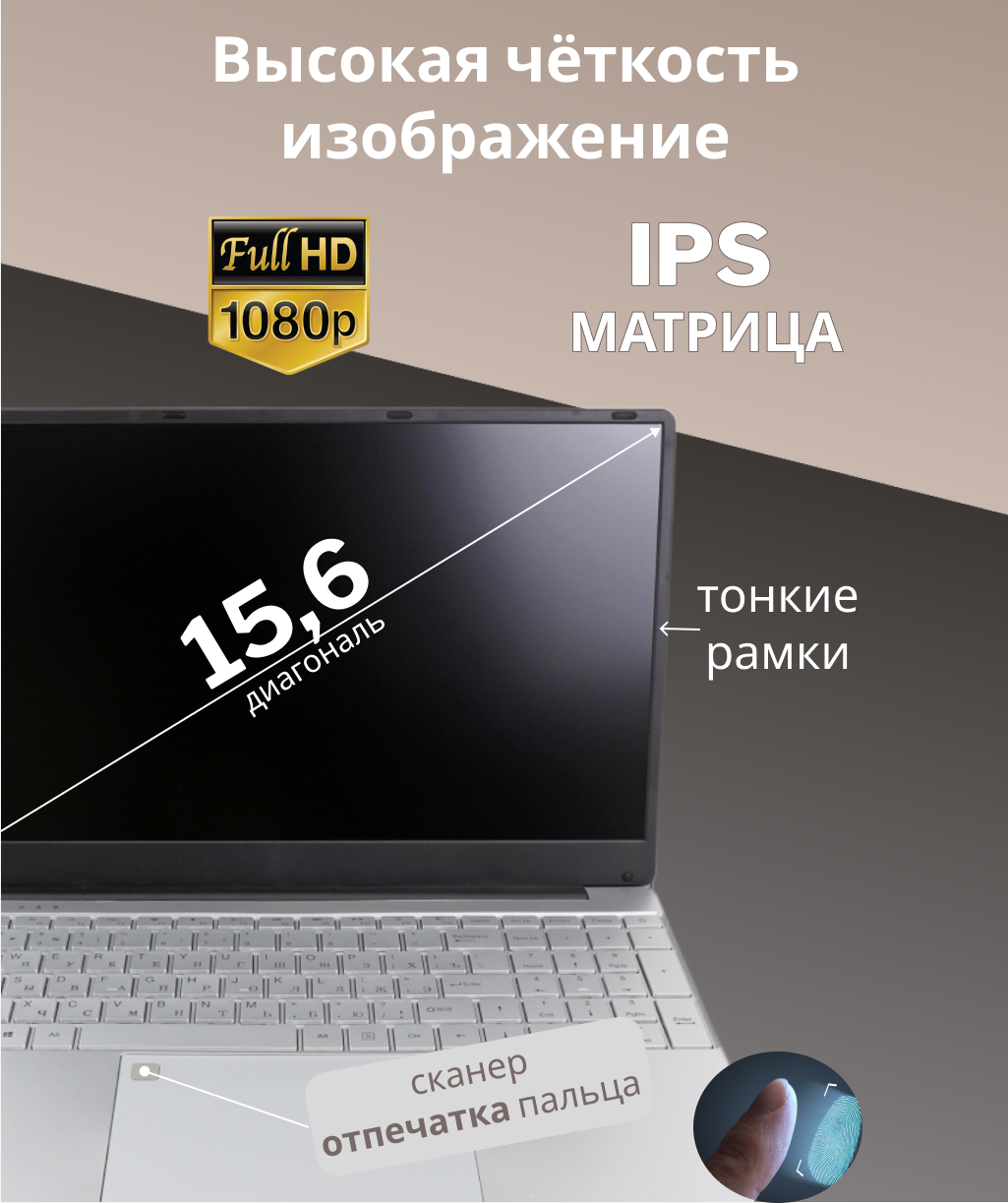 15.1" Ультрабук для работы и учебы, Notebook, RAM 16 ГБ, SSD 1ТБ, IPS Full HD 1920x1080, Intel N5095, Windows 11 pro, цвет Mid Gray, русская раскладка