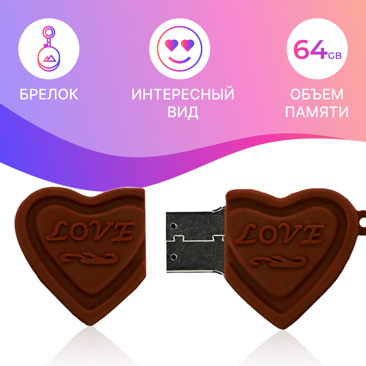 10 цен на Флешка USB 64GB / Оригинальная подарочная флешка ЮСБ 64 ГБ / Флеш накопитель / USB Flash Drive (Two hearts)