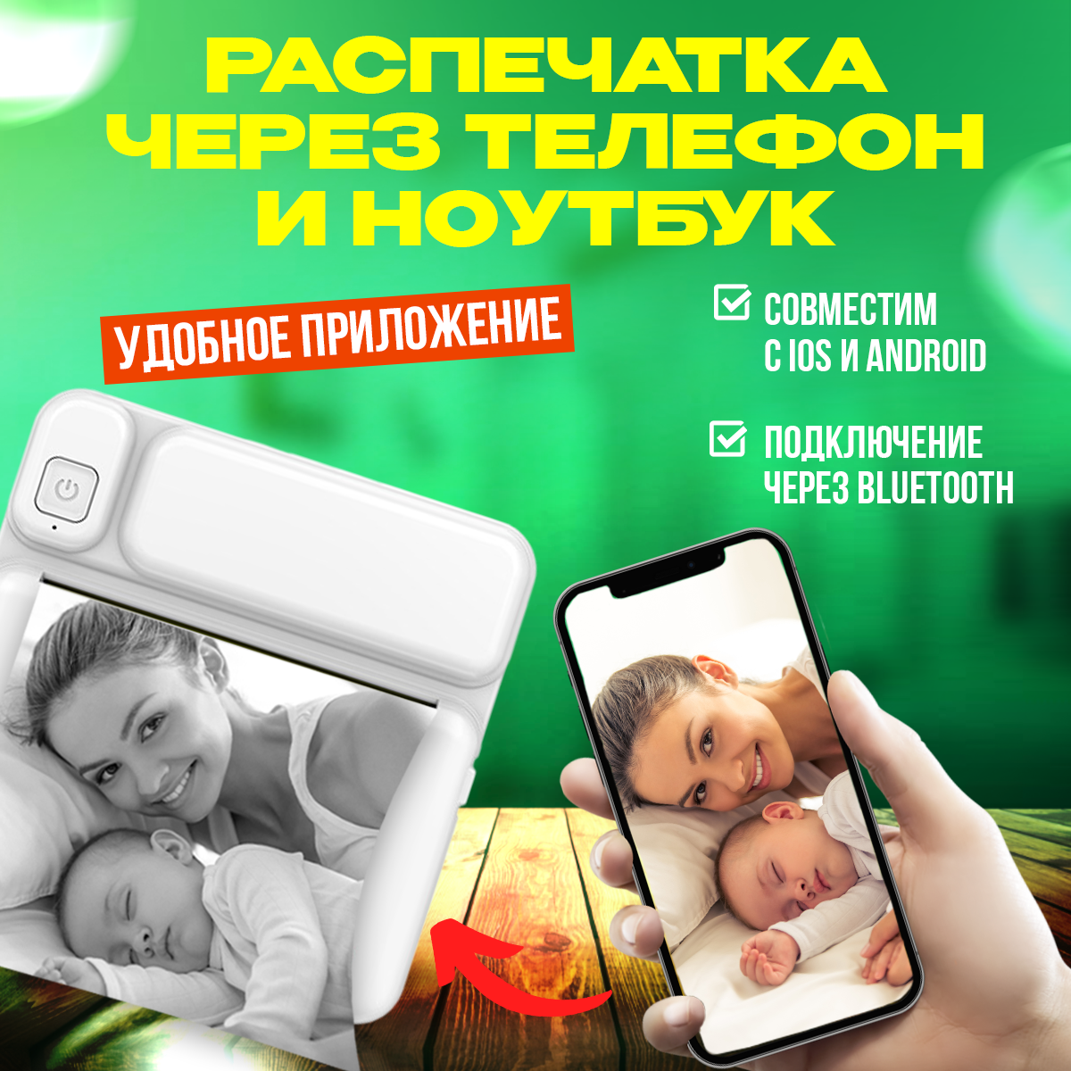 Портативный мини принтер для картинок, этикеток, карманный беспроводной минипринтер для фото; термопринтер